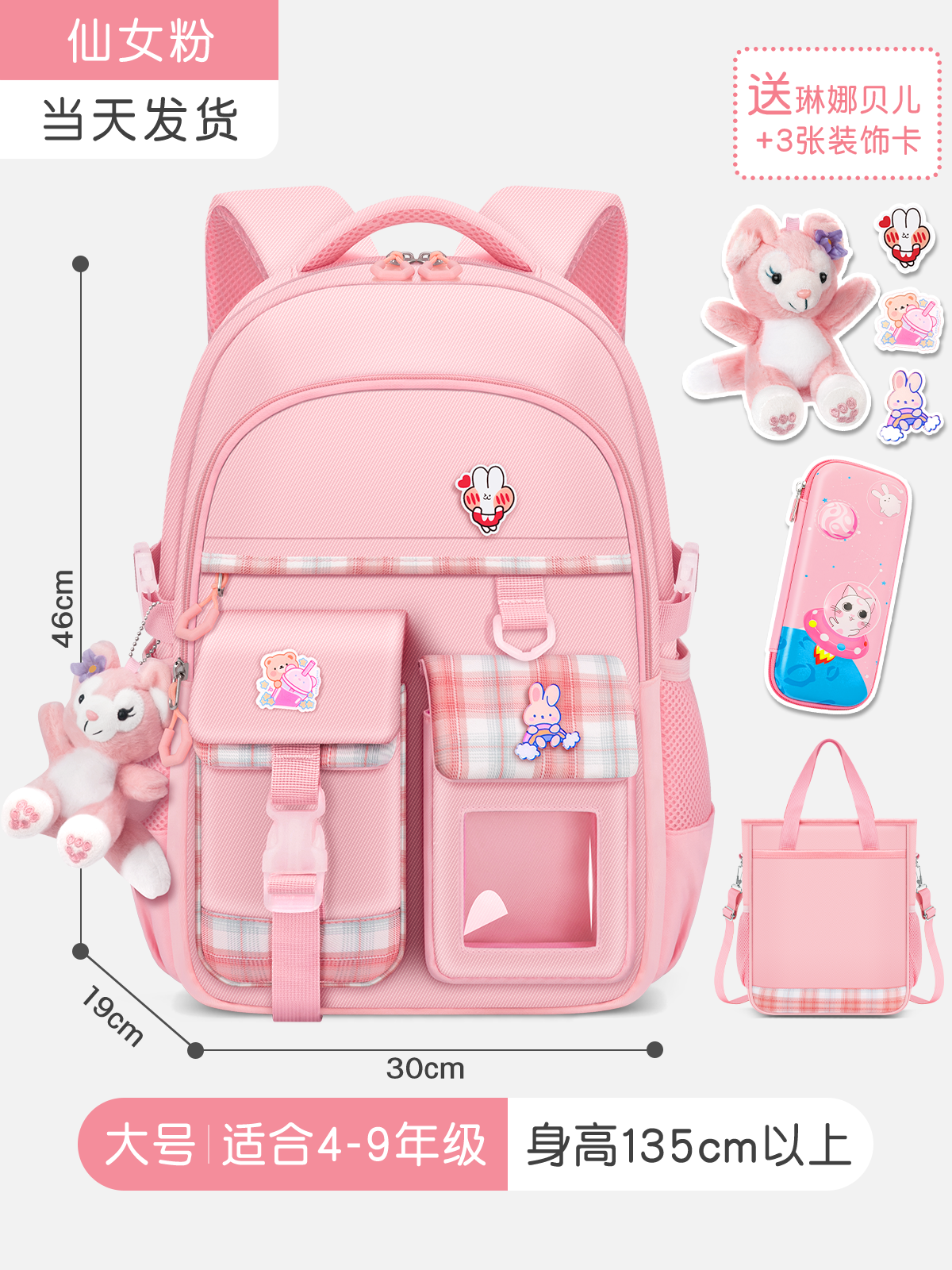 초등학생을위한 2024 새로운 여학생 학교 가방 3 ~ 6 학년 2 학년 소녀 어린이 및 소녀 경량 척추 보호스토어 가기
