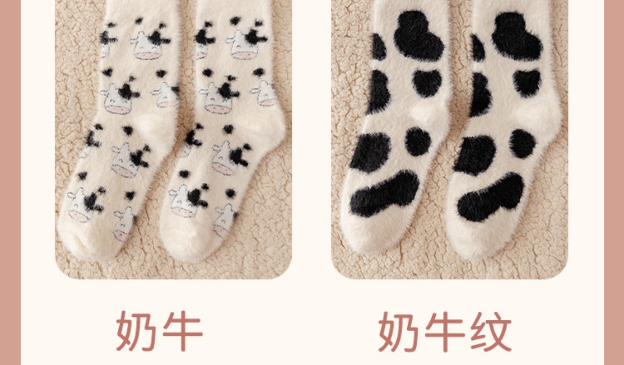 봉제 양말 어린이 가을 홈 기모 두꺼운 귀여운 중간 길이 양말 가을과 겨울 홈 따뜻한 밍크 벨벳 스타킹