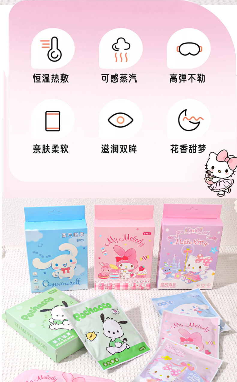 산리오 정품 인증 증기 아이 마스크 5 조각 인쇄 여행 수면 아이 마스크 학생 점심 휴식 뜨거운 압축 아이 마스크