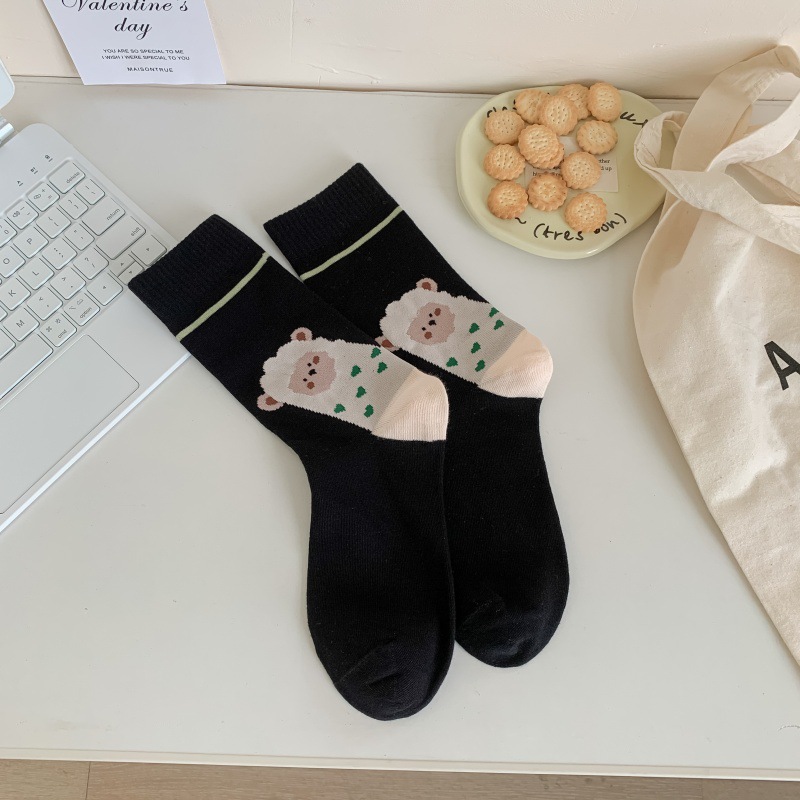 MEKKI 한국식 뒤꿈치 일러스트 여성 중간 길이의 스타킹 인 스타일 코튼 만화 동물 가을 대학 스타일 스타킹스토어 가기