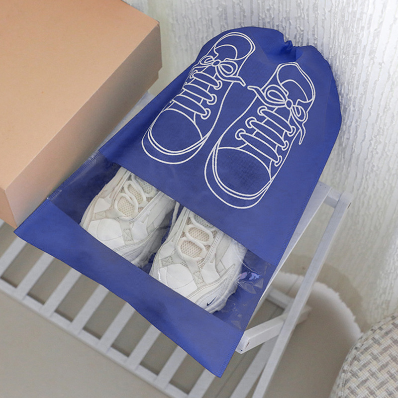 • M사이즈-5개 [네이비블루 프린트 신발주머니 27*36cm]₳