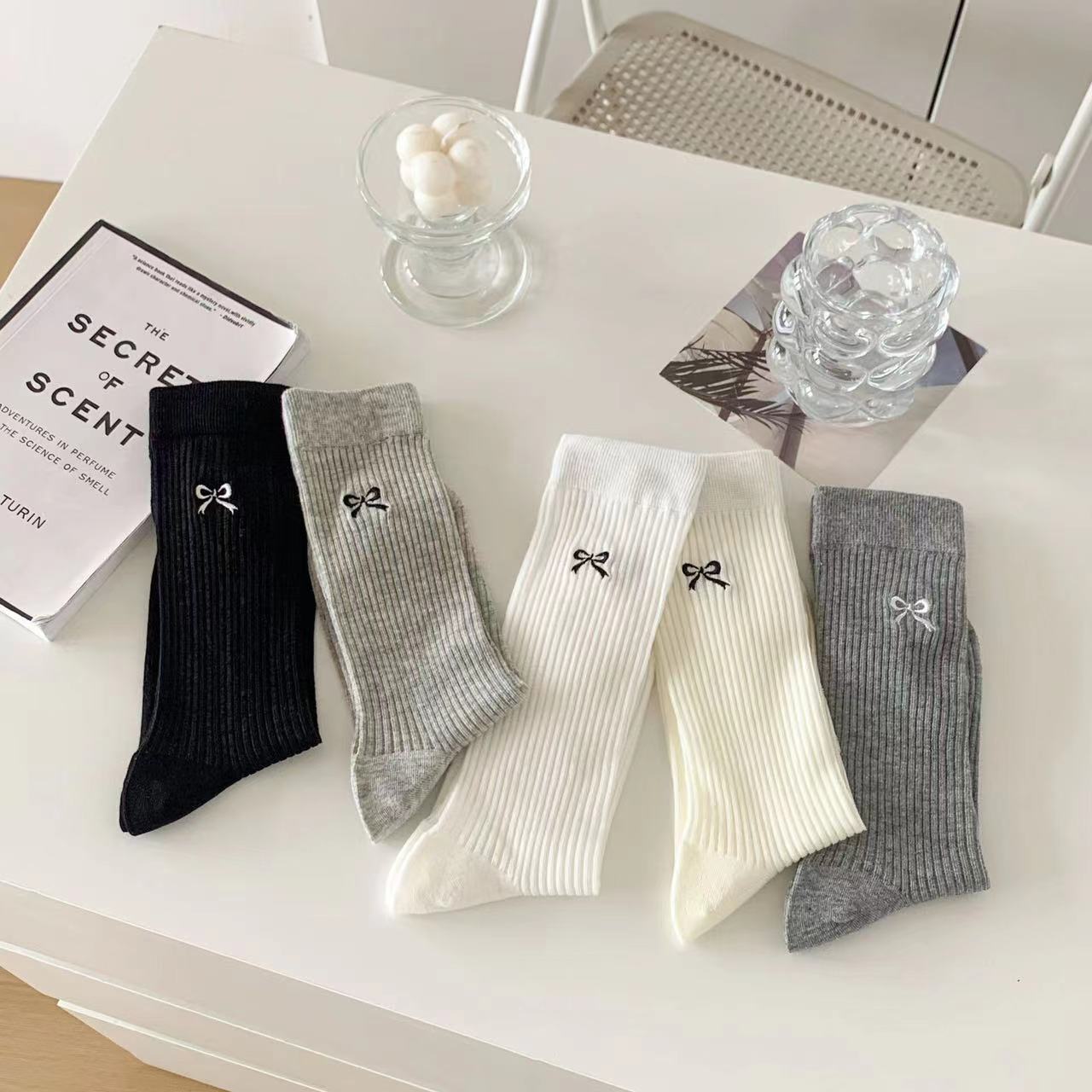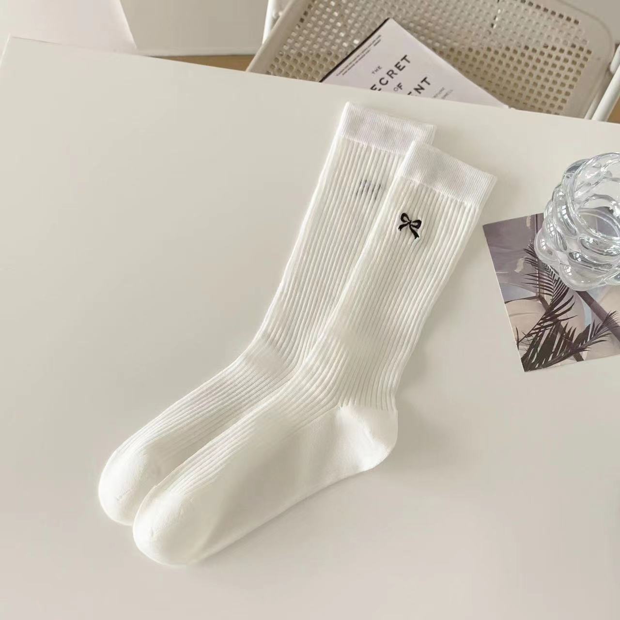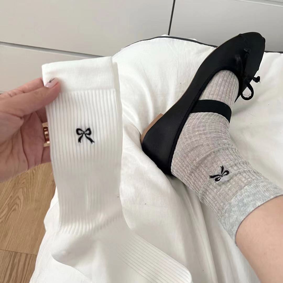 땀 흡수성 Bowknot 양말 여성 중간 길이 양말 여름 얇은 메쉬 통기성 한국식 일본식 여름 스타킹 인터넷 인기스토어 가기