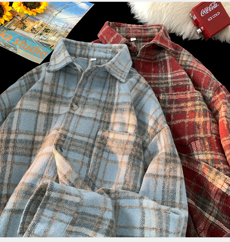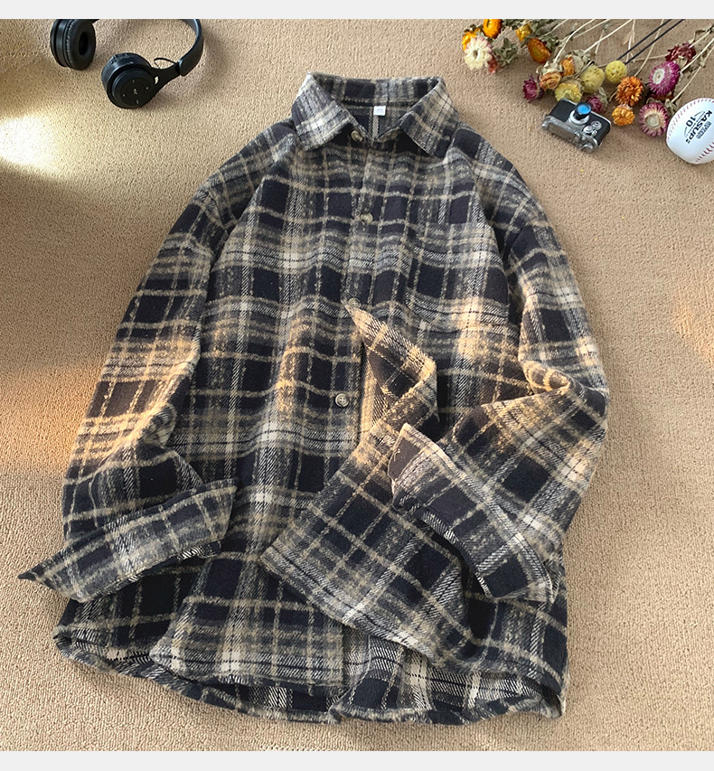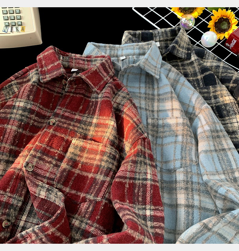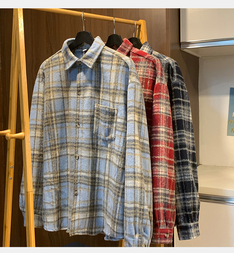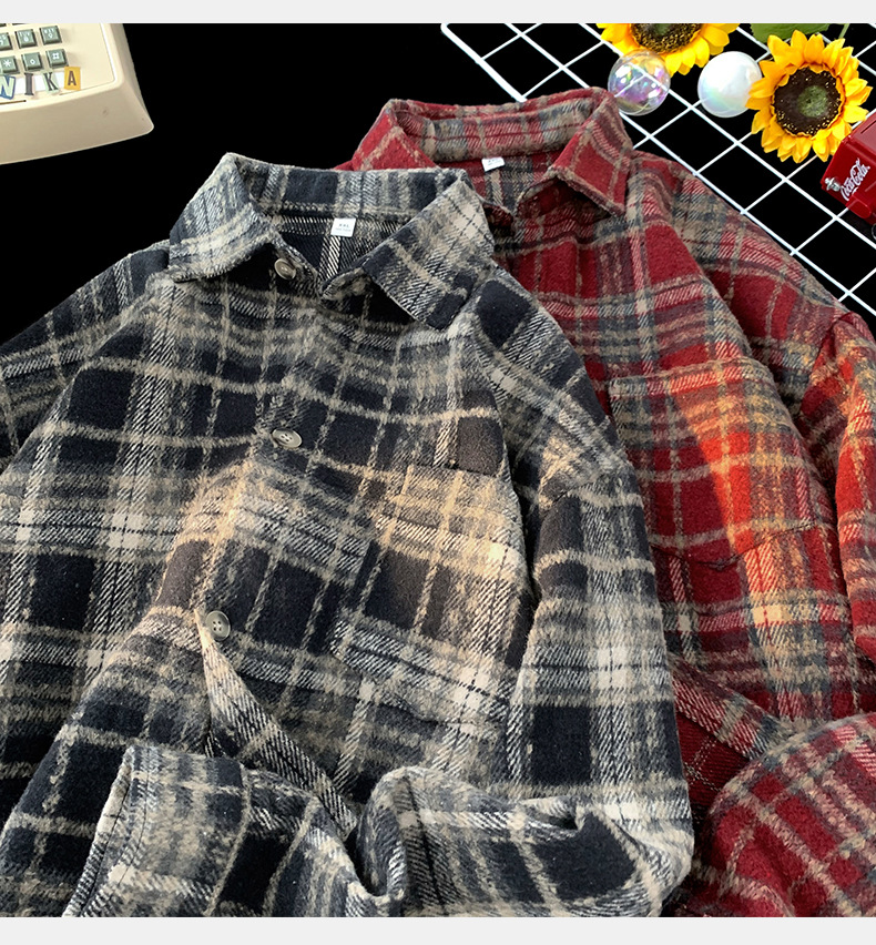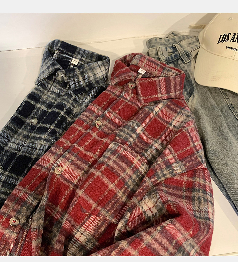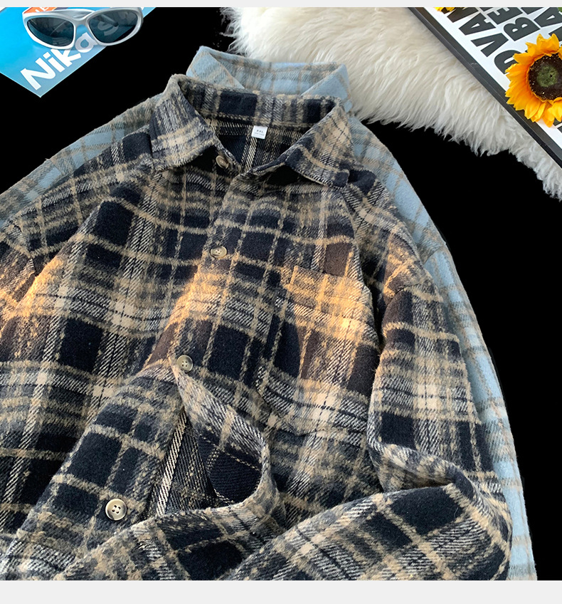 한루 남성복 레트로 배색 체크 셔츠 남녀 봄 신상 분위기 있는 커플 셔츠 루즈핏 자켓