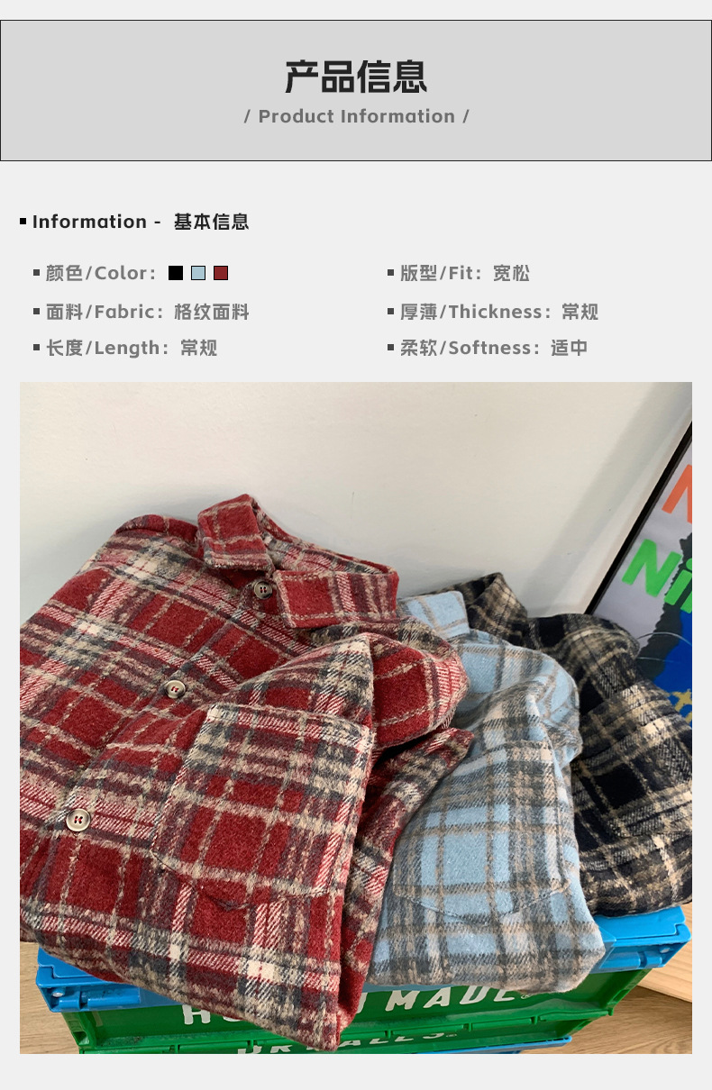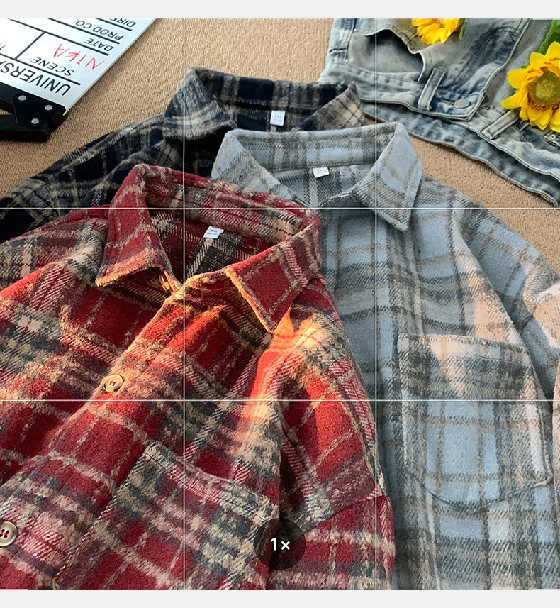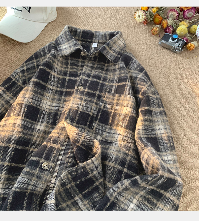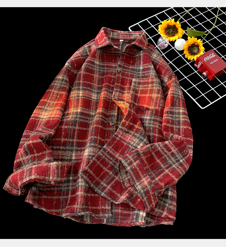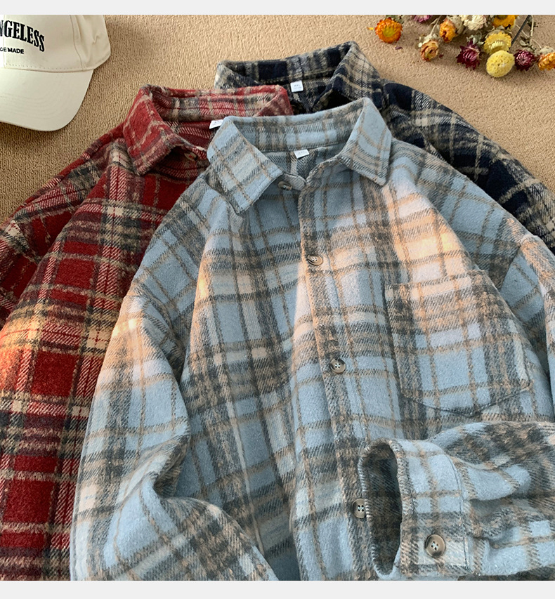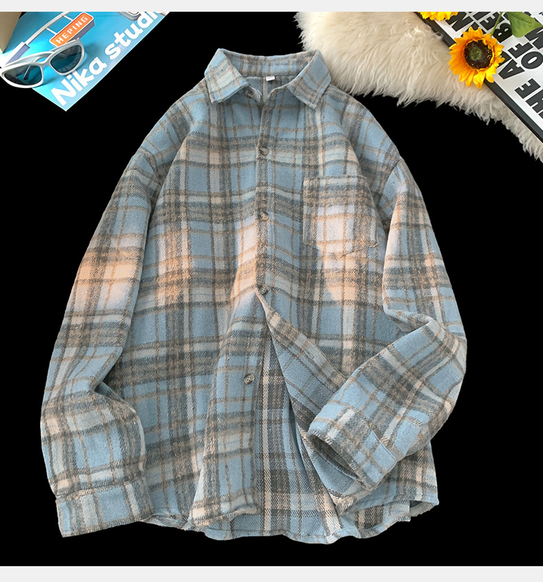 한루 남성복 레트로 배색 체크 셔츠 남녀 봄 신상 분위기 있는 커플 셔츠 루즈핏 자켓