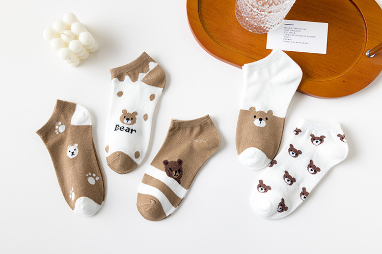 양말 새로운 레이스 사랑 만화 곰 양말 낮은 얇은 여성 보트 양말 캐주얼 폴리 에스터 면화 봄과 여름 양말 여성