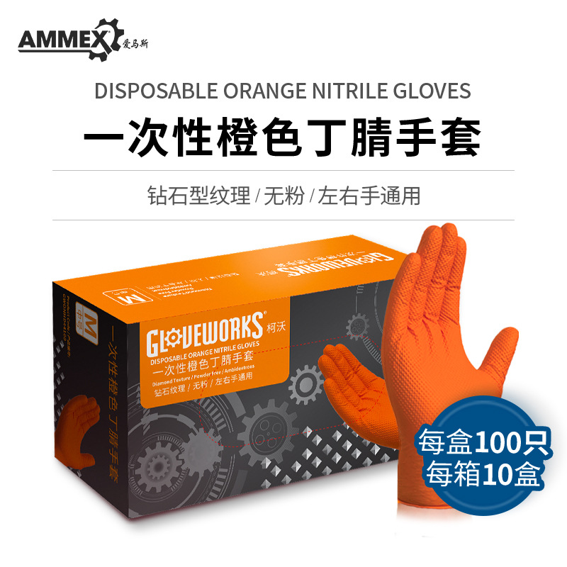 AMMEX/AMAS GWONHD 일회용 오렌지 니트릴 장갑 방수 방수 내구성 주방 유지 보수 미끄럼 방지스토어 가기
