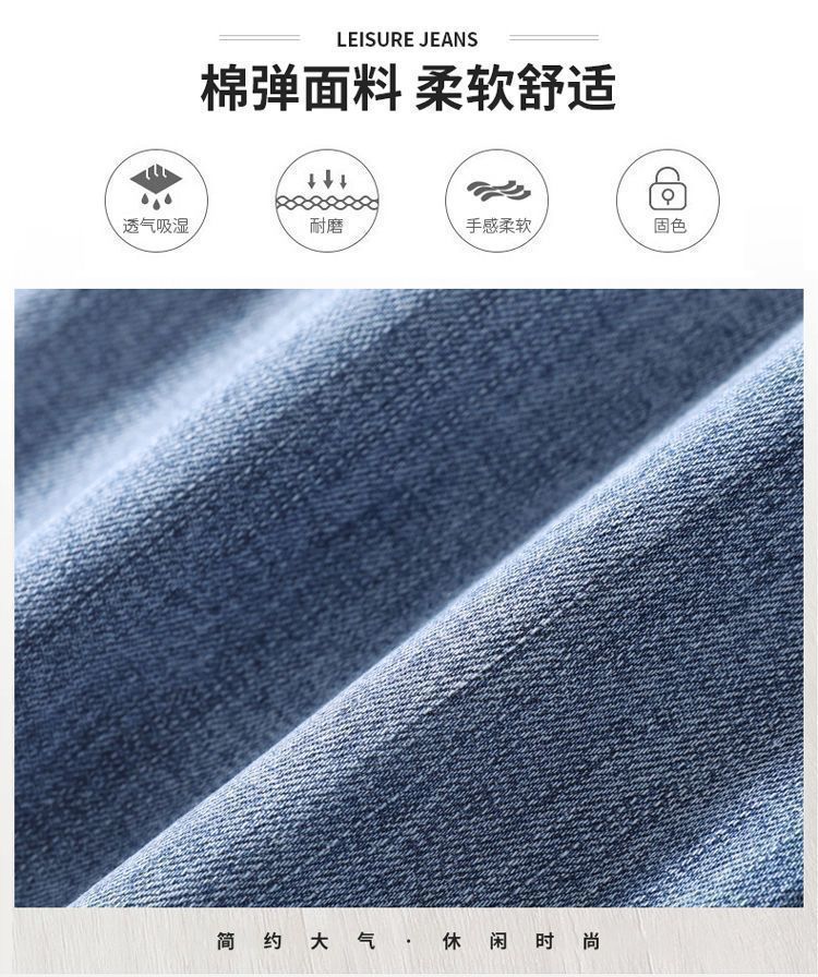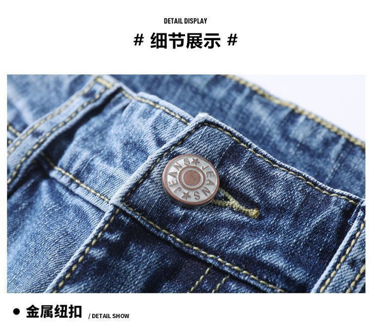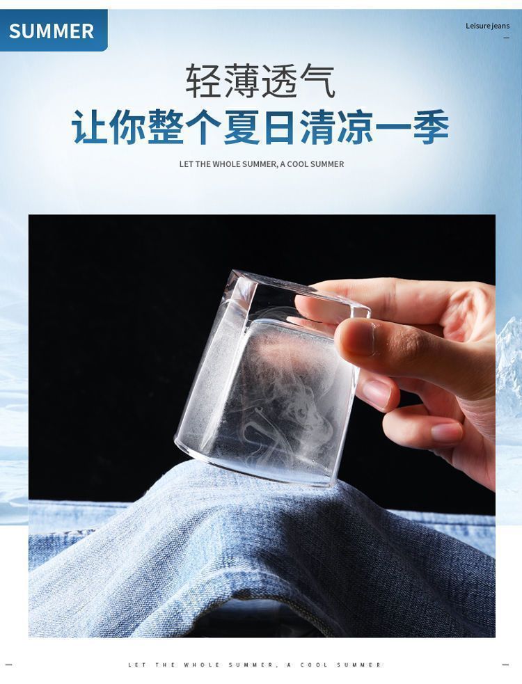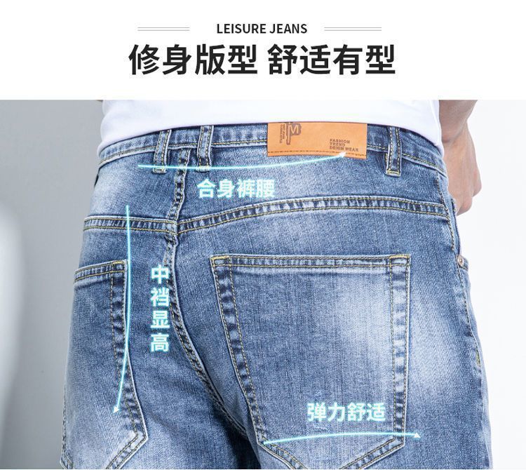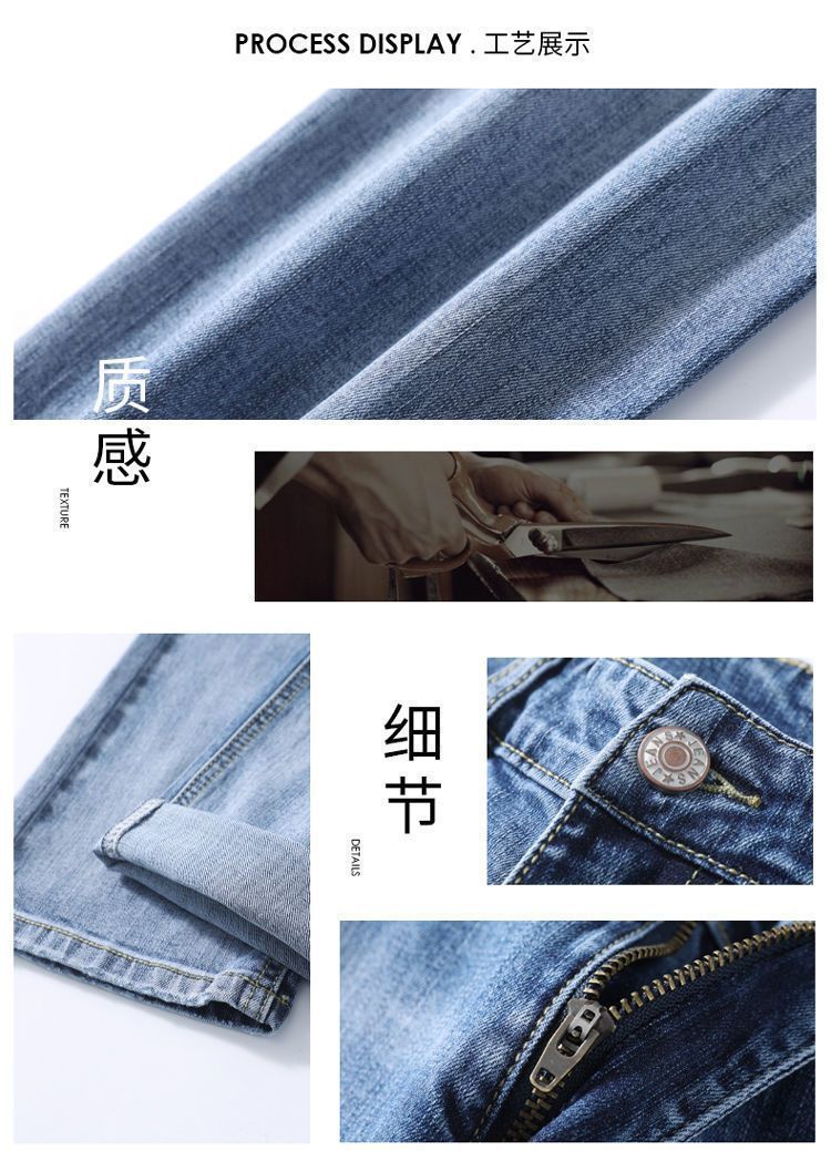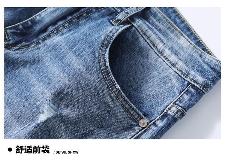 라이트 블루 남성용 청바지 남성용 스트레치 리핑 바지 여름 얇은 슬림 핏 스트레이트 바지 남성용 하이 엔드 캐주얼 바지스토어 가기