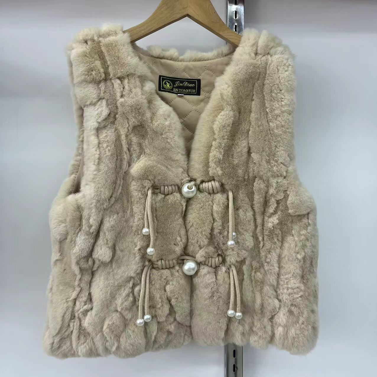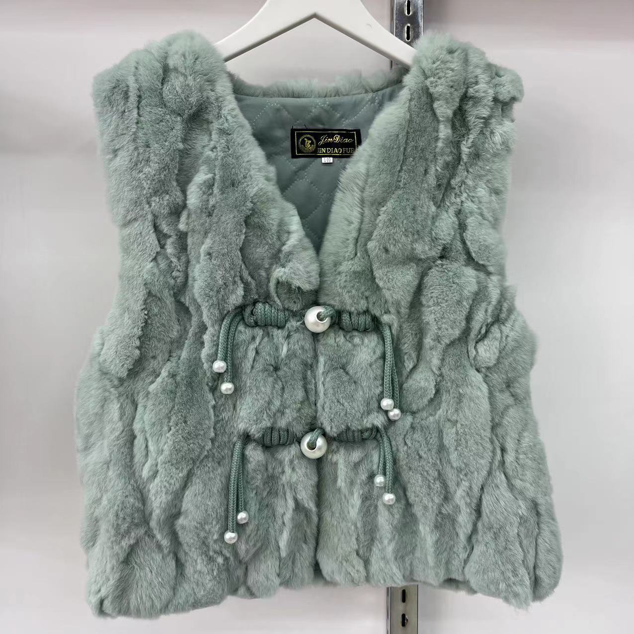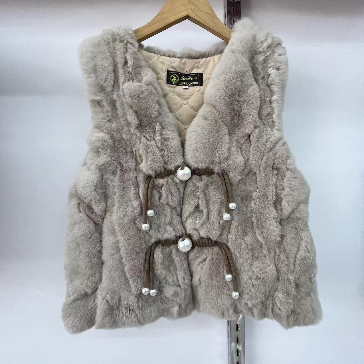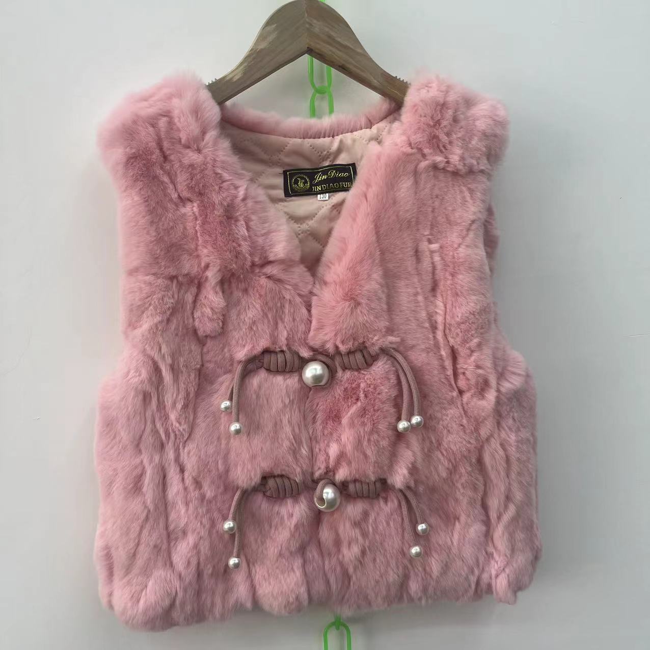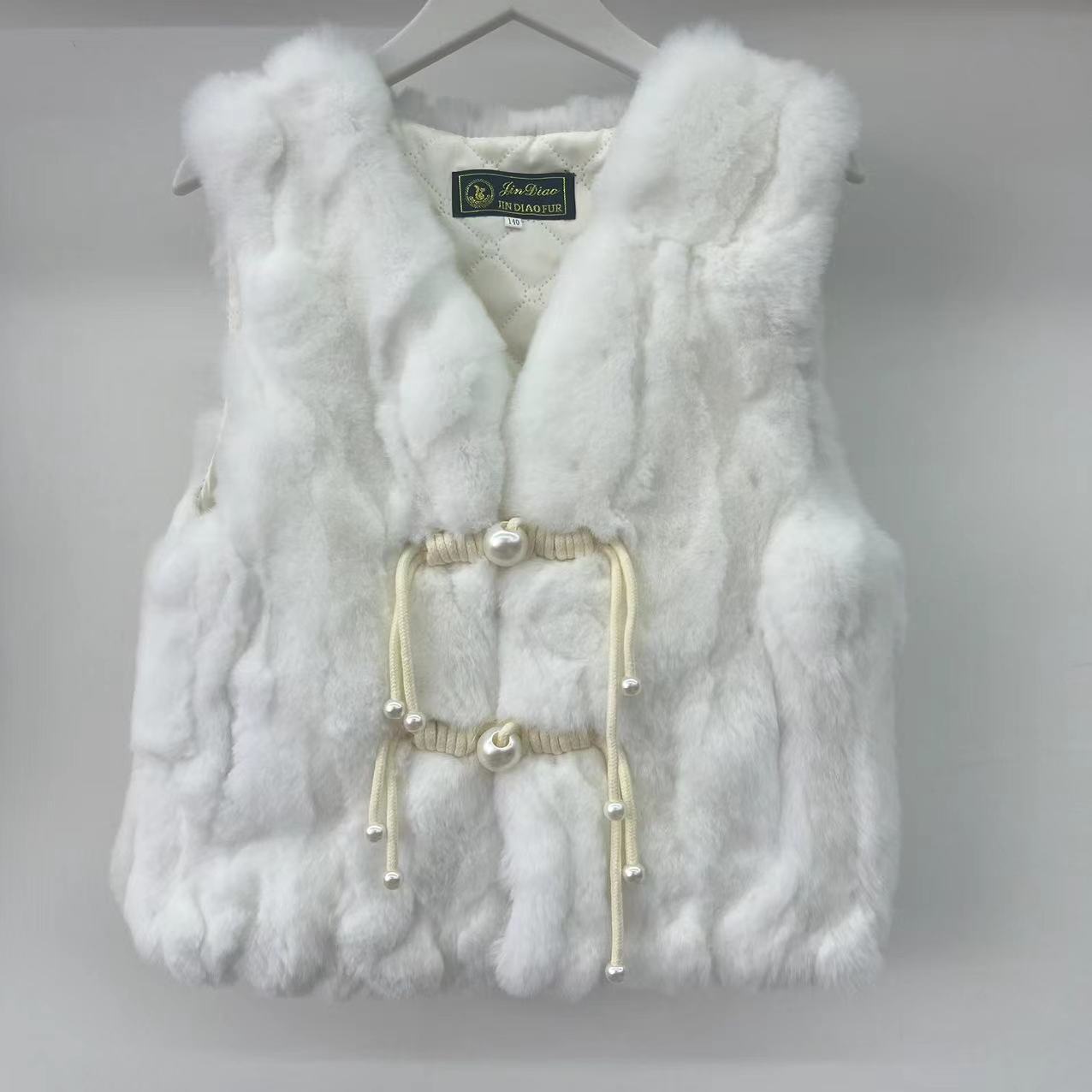 2024 리얼 렉스 래빗 모피 조끼 어린이 가을과 겨울 모피 워머 조끼 따뜻한 V 넥 모피 국가 스타일스토어 가기