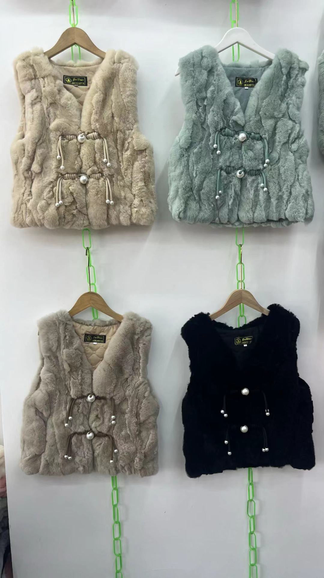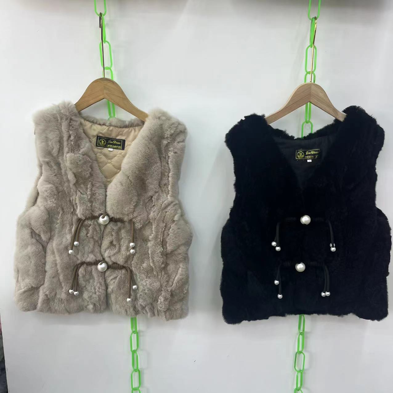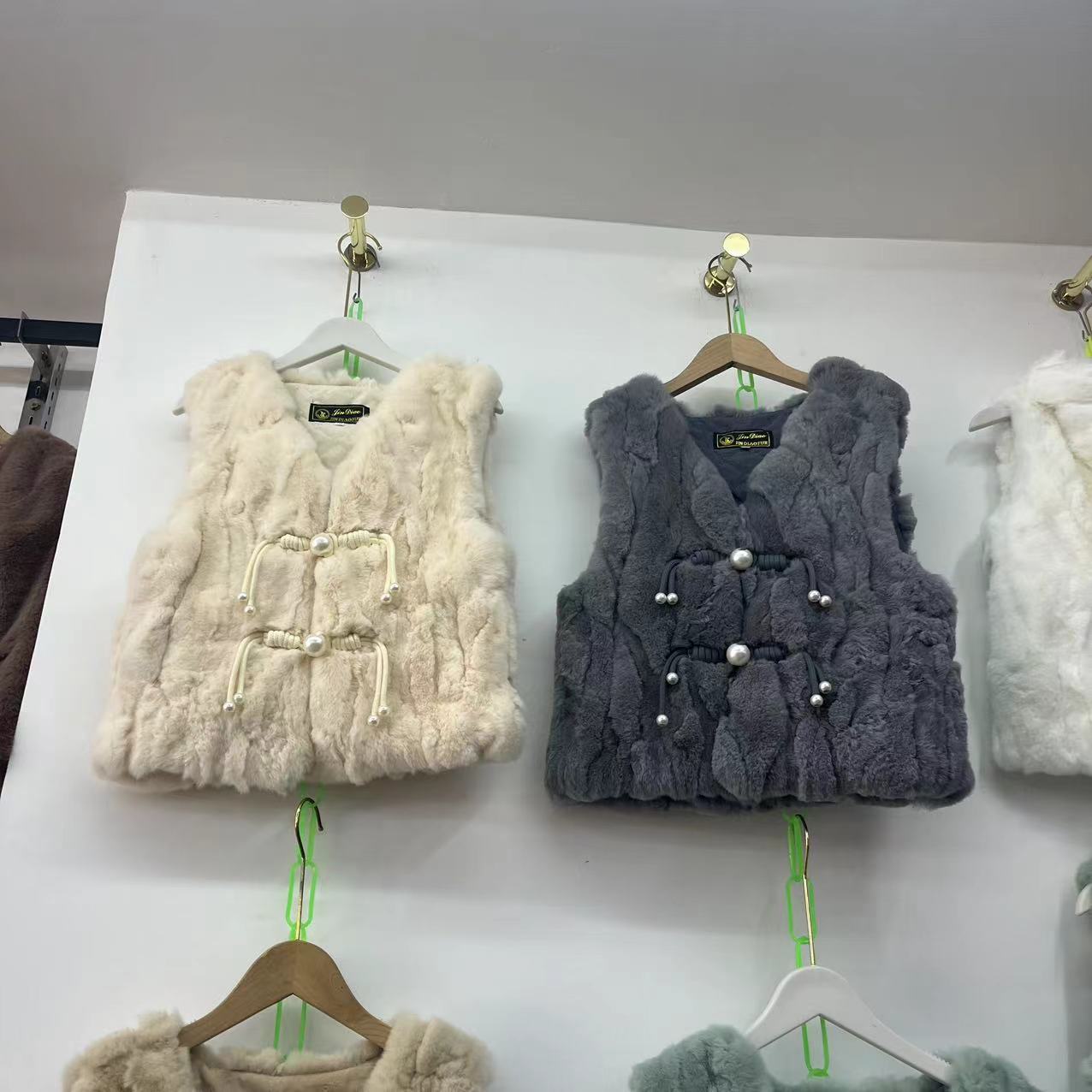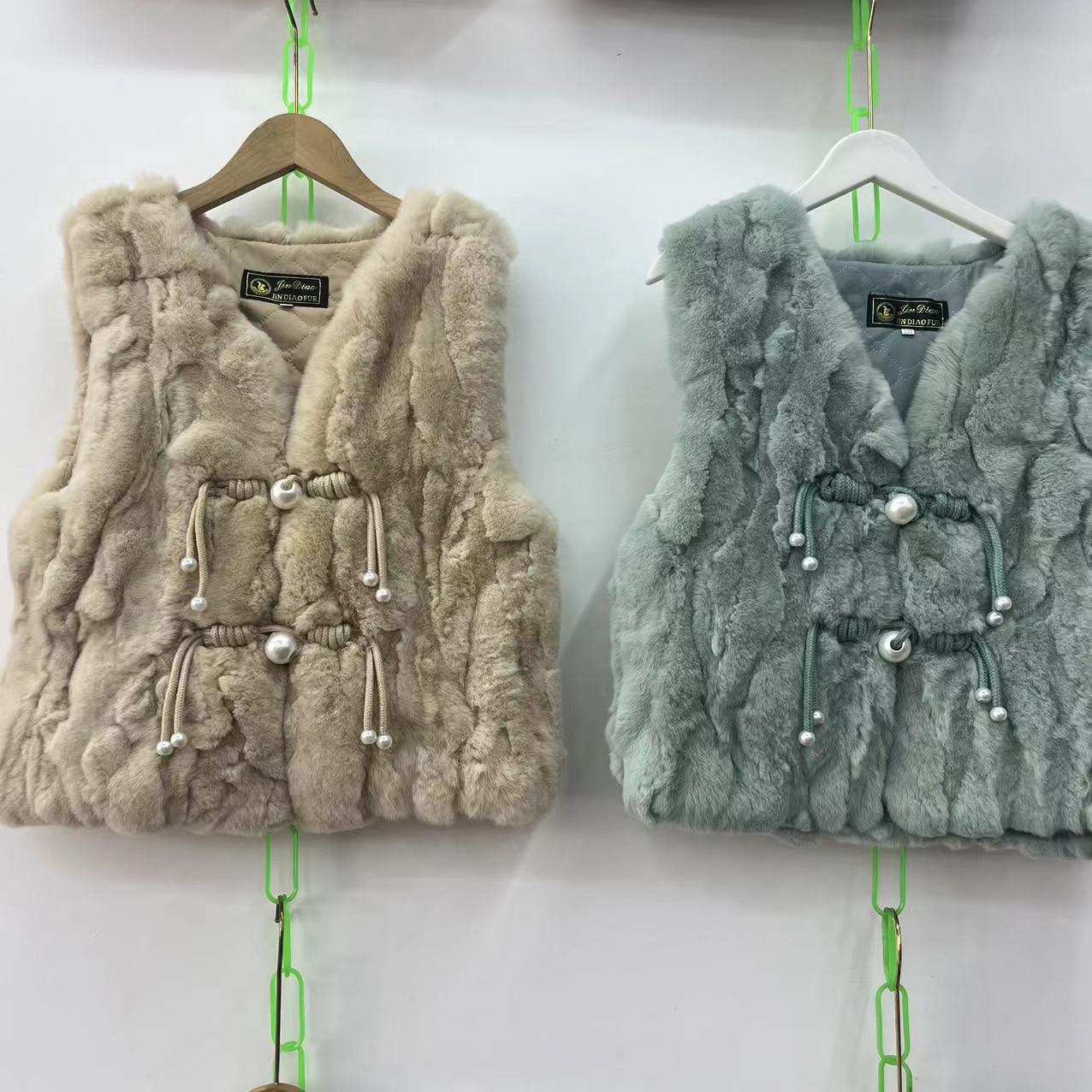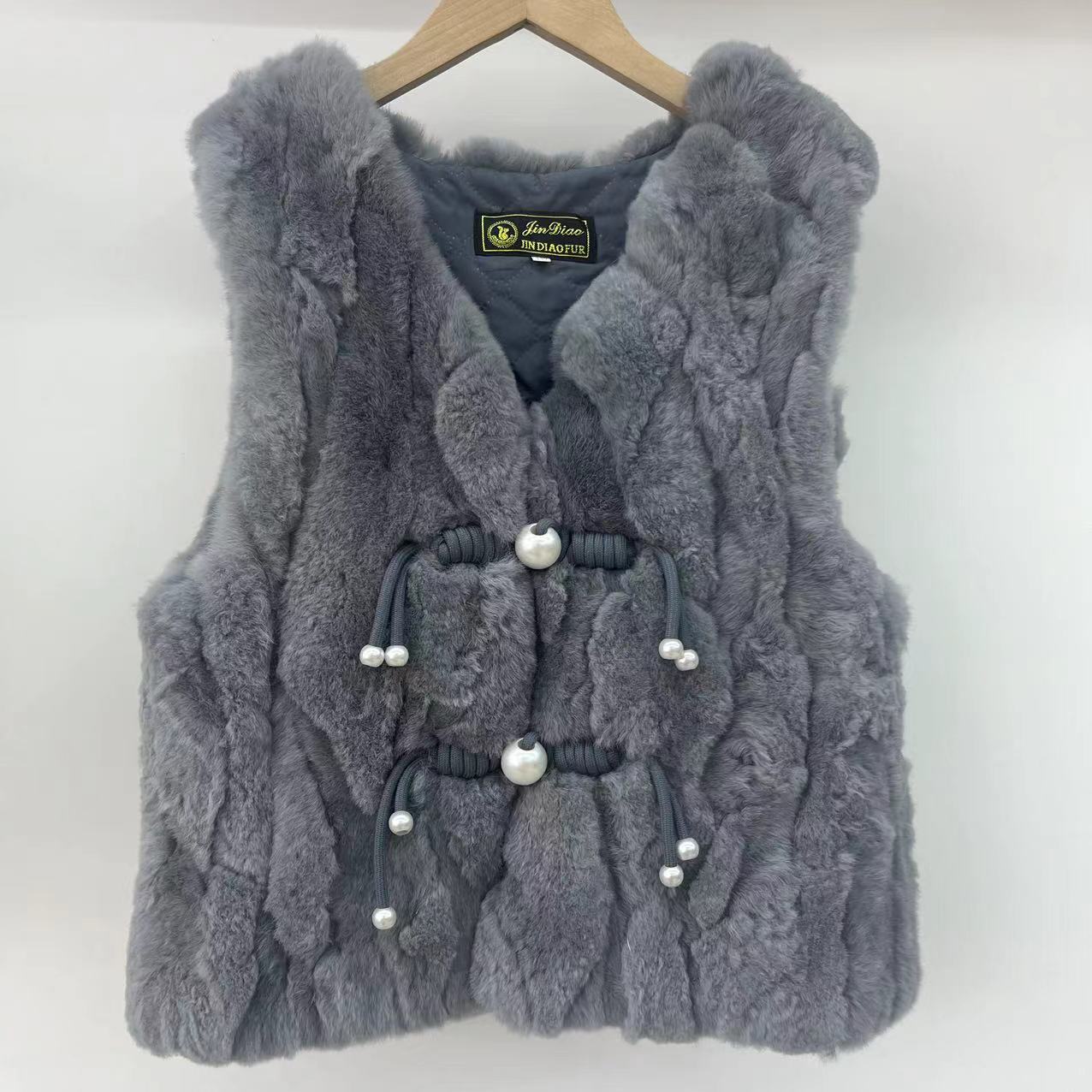 2024 리얼 렉스 래빗 모피 조끼 어린이 가을과 겨울 모피 워머 조끼 따뜻한 V 넥 모피 국가 스타일스토어 가기