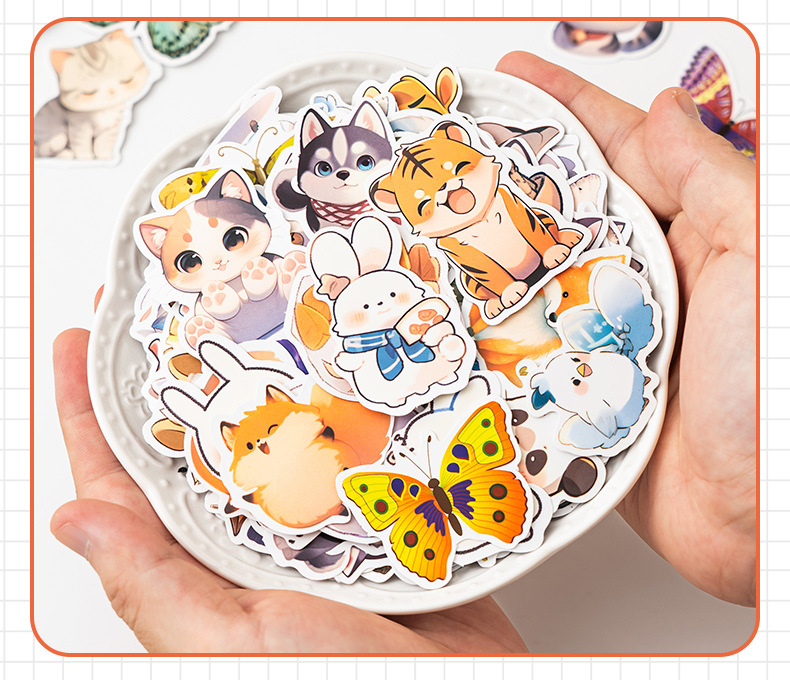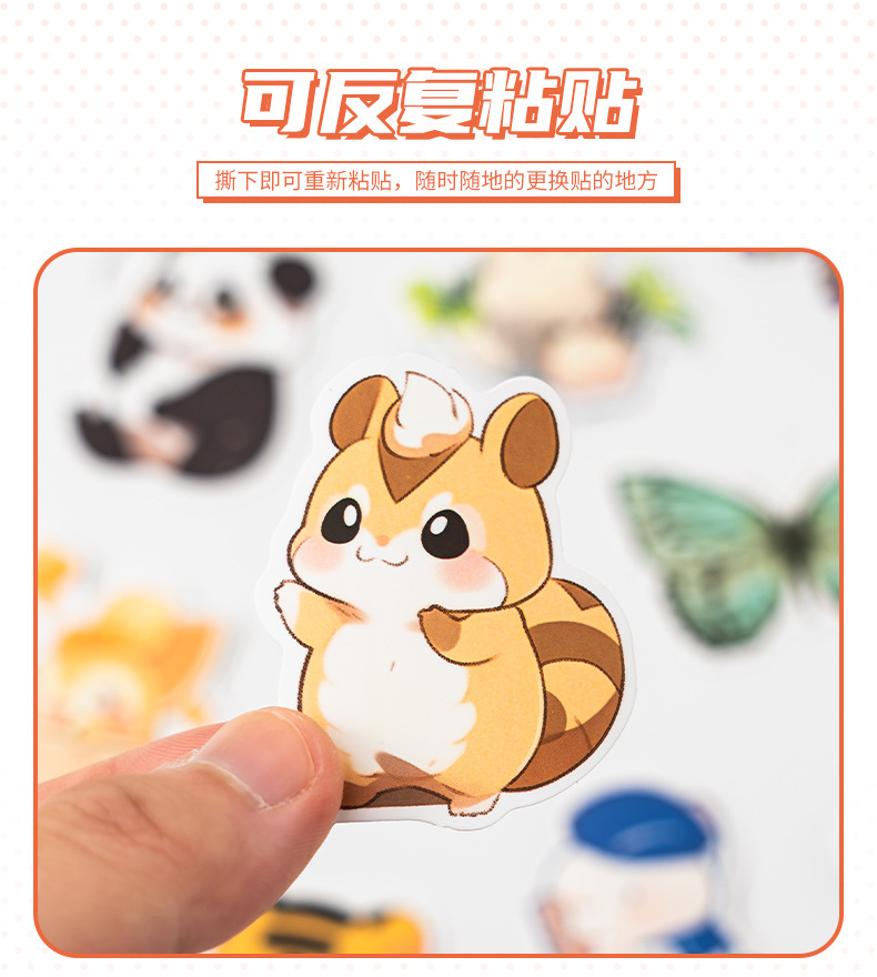작은 동물 스티커 가방에는 바람 만화 손 계정 스티커에 끈적 끈적한 귀여운 고가의 손 계정 장식 재료가 있습니다.스토어 가기