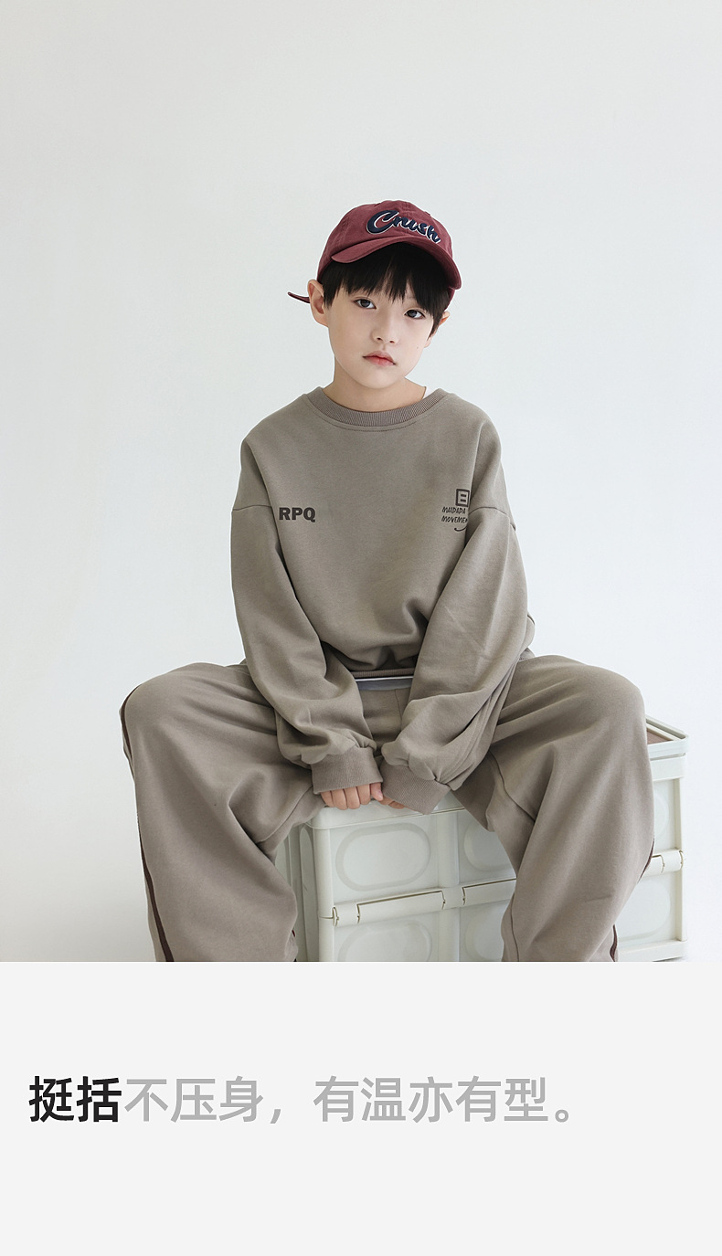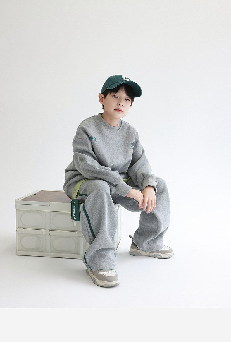 Huzhou Zhili 아동복 2025 새로운 아동 스포츠 가을 의류 투피스 테리 코튼 소년 스포츠 스웨트 셔츠 세트스토어 가기