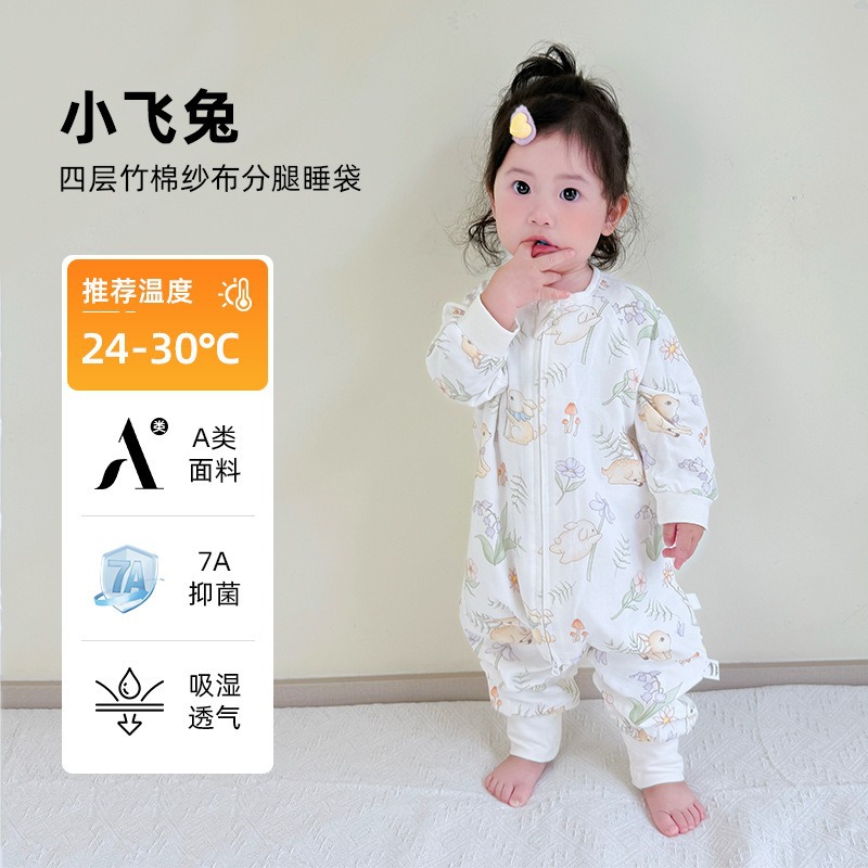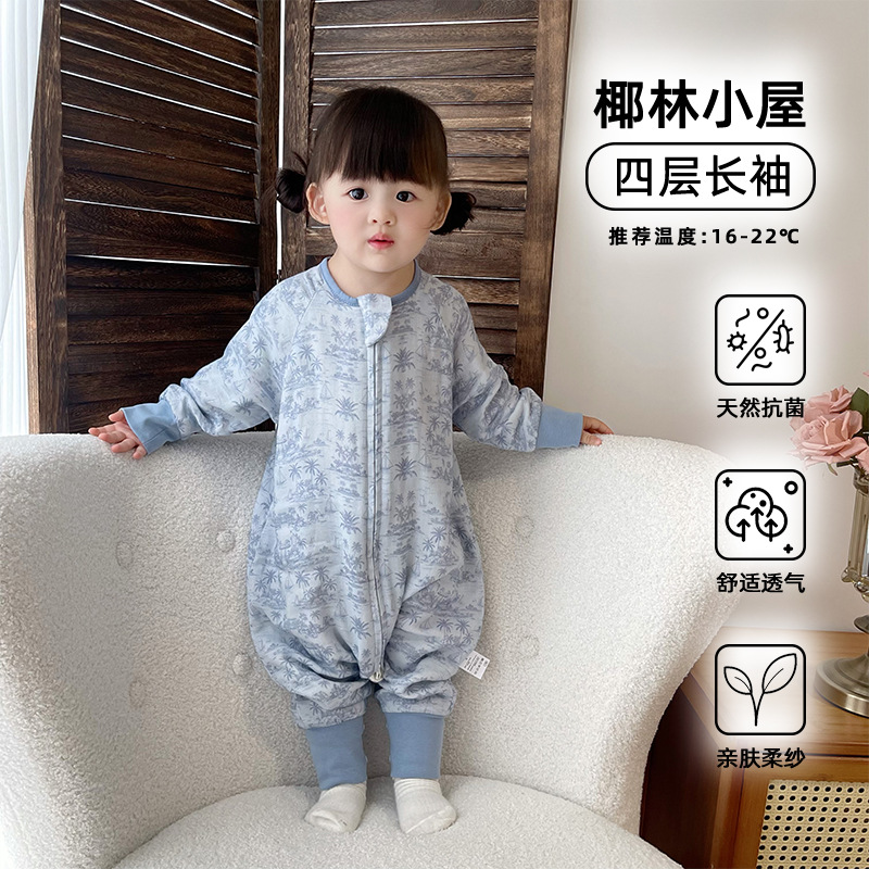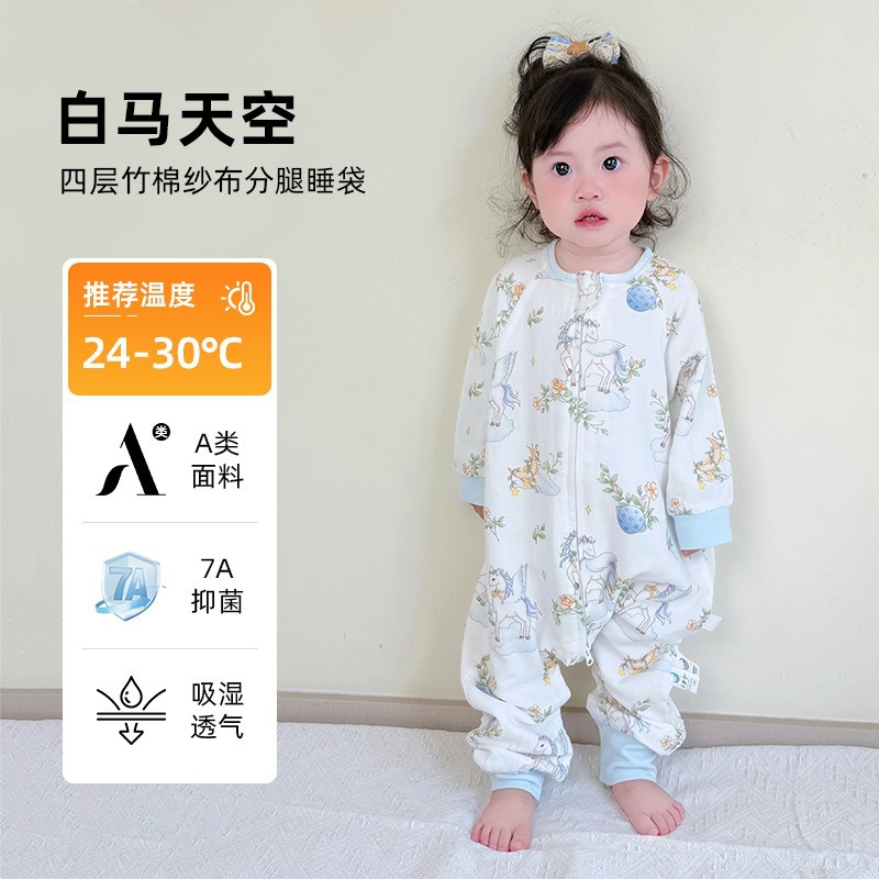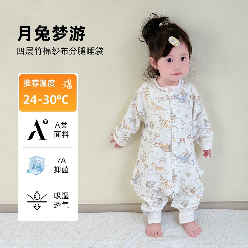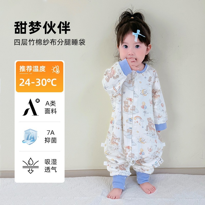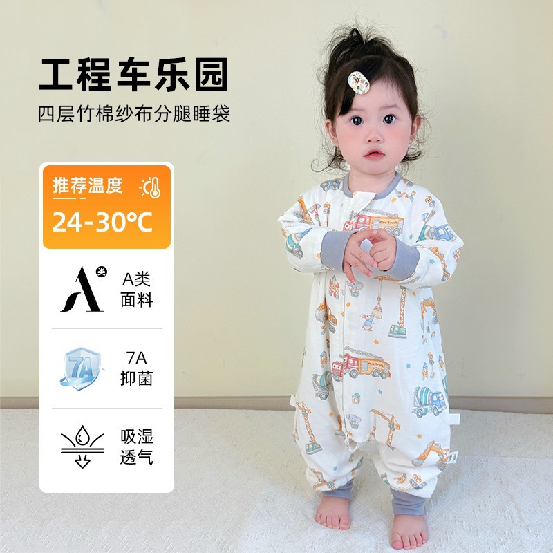 4겹 A급 아기 침낭, 오염 방지 대나무 면 거즈 잠옷, 다리 분리형, 발차기 방지 이불, 남녀 아기용 봄 가을 에어컨 옷스토어 가기