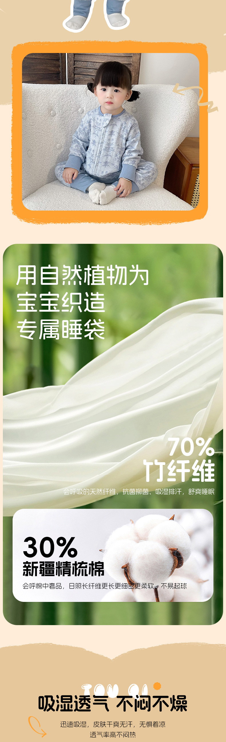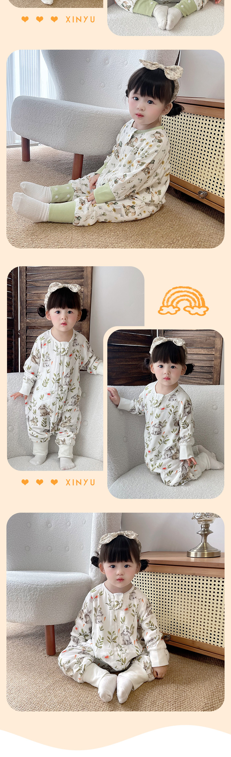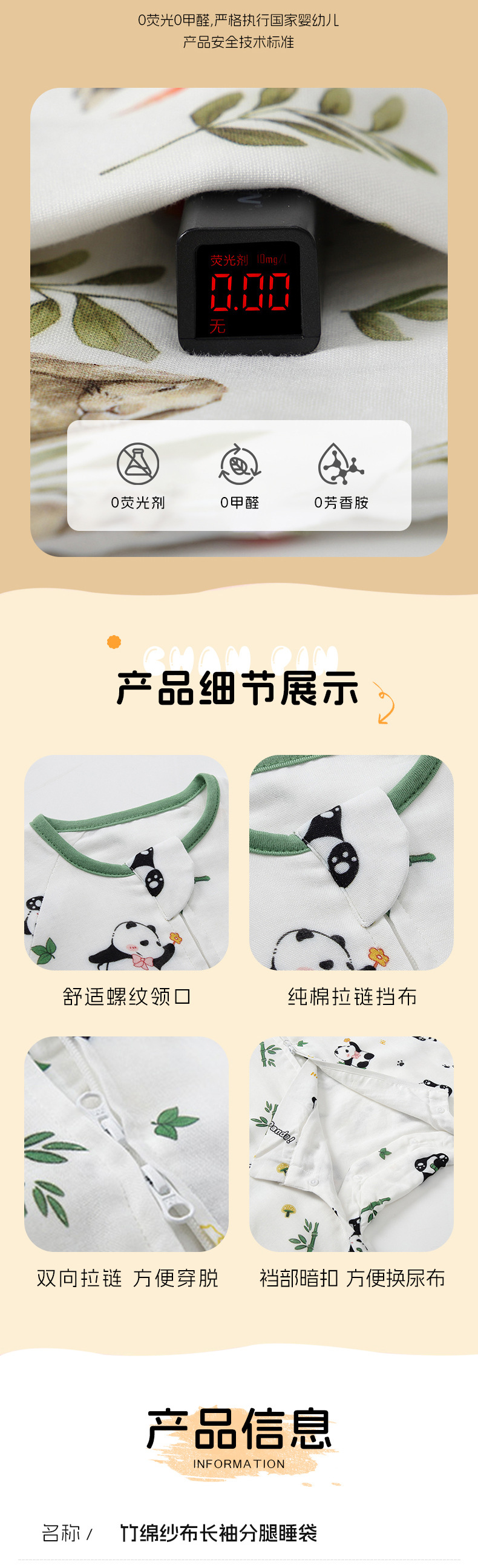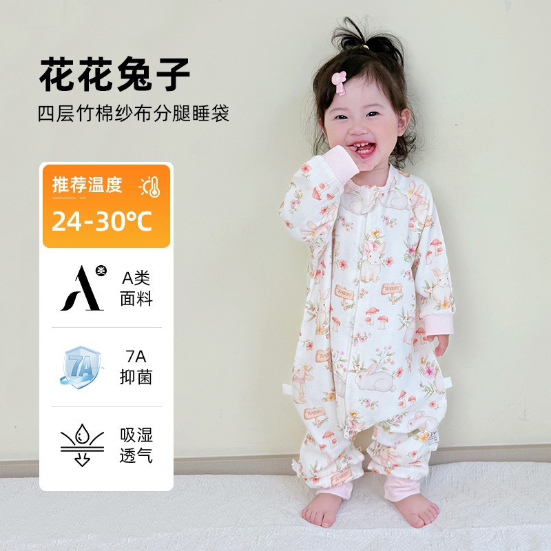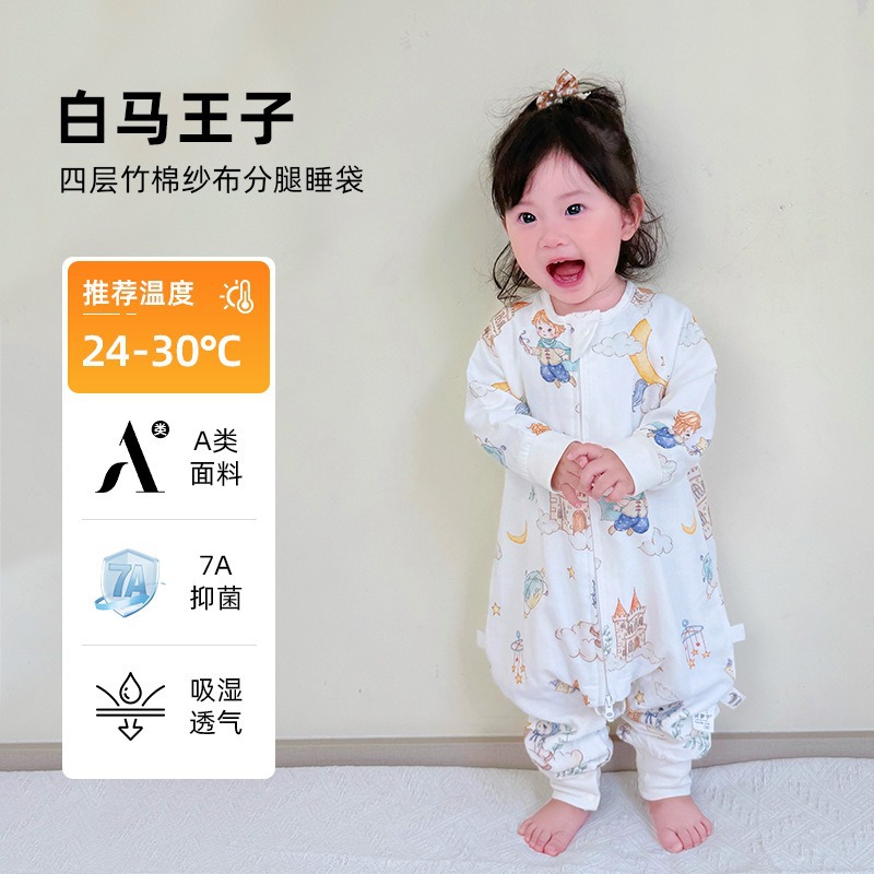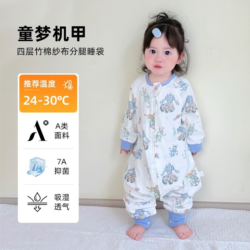 4겹 A급 아기 침낭, 오염 방지 대나무 면 거즈 잠옷, 다리 분리형, 발차기 방지 이불, 남녀 아기용 봄 가을 에어컨 옷