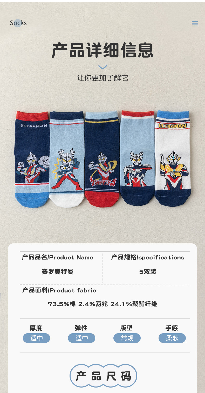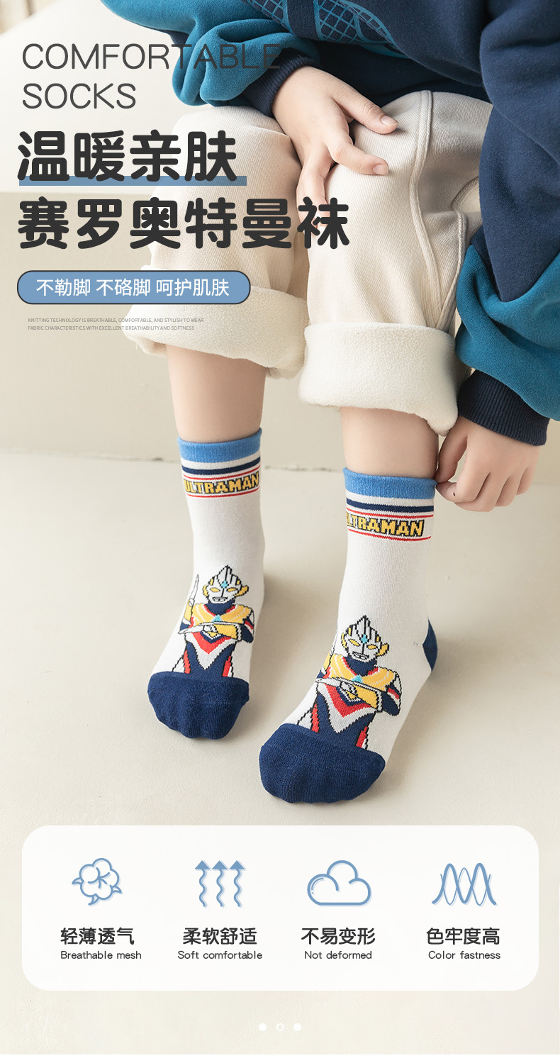 Syro Ultraman 어린이 양말 가을과 겨울 만화 소년 중간 튜브 양말 신장 긴 스테이플 코튼 땀 흡수성 통기성 스포츠 양말