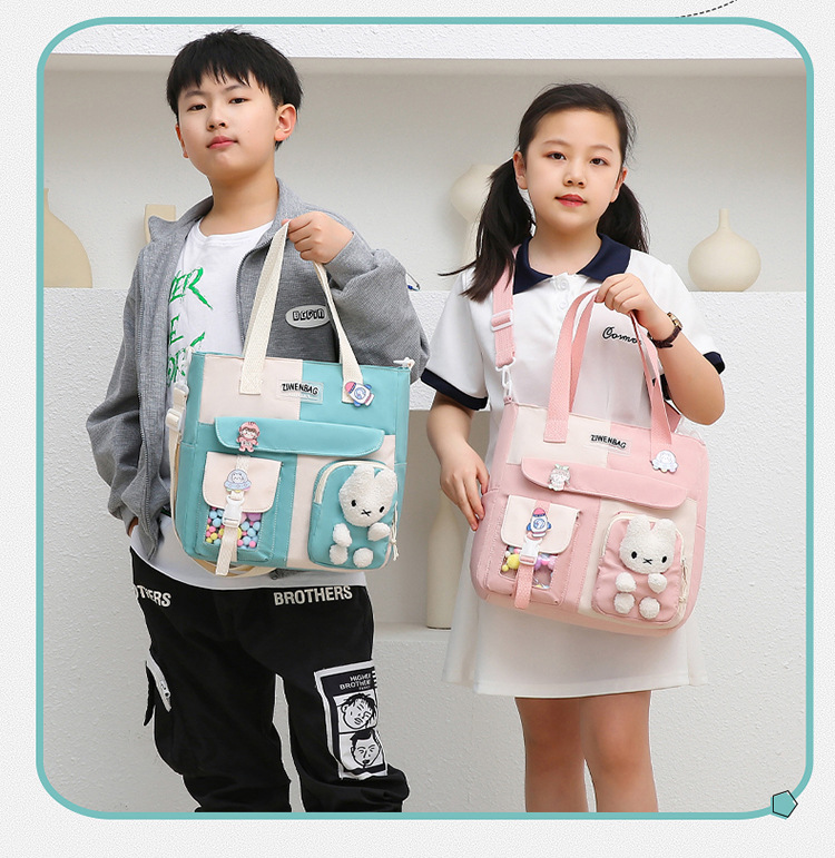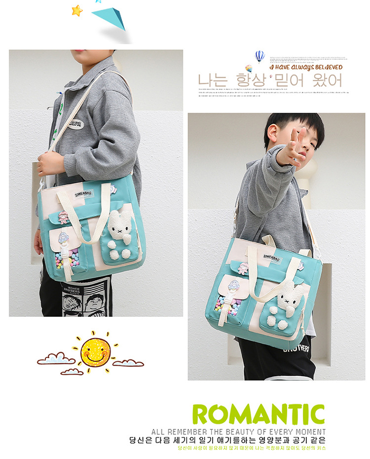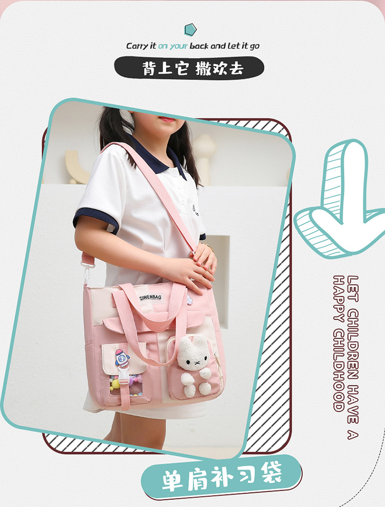 크로스 바디 책가방 초등학생 멀티 사용 메이크업 가방 중학교 수업 휴대용 책 가방 어린이 확대 두꺼운 어깨 가방스토어 가기