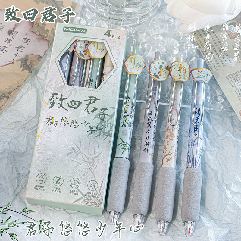 골동품 네 신사 프레스 젤 펜 높은 색상 값 ST 헤드 브러시 펜 블랙 젤 펜 학생 시험