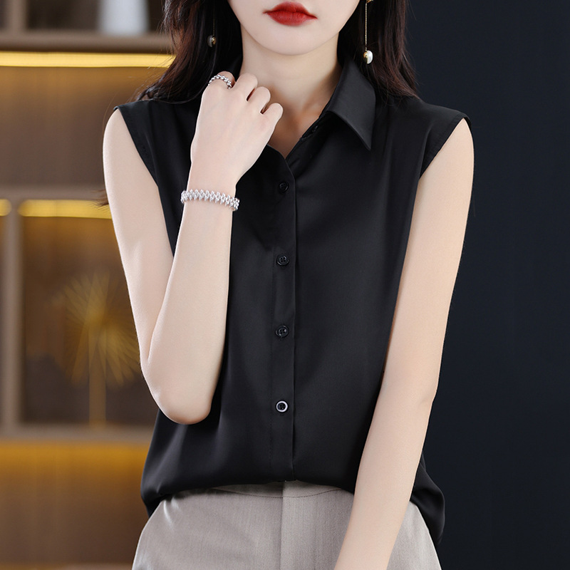 2024 년 가을과 겨울 새로운 민소매 조끼 셔츠 가짜 칼라 화이트 슬림베이스 셔츠, 동반자 가짜 목걸이 여성 착용