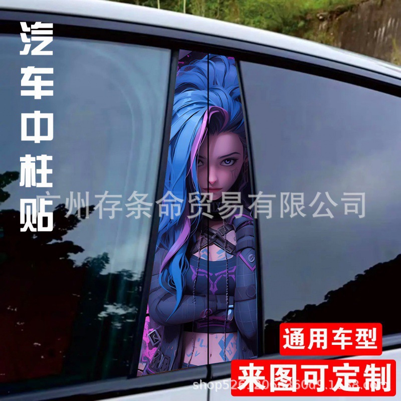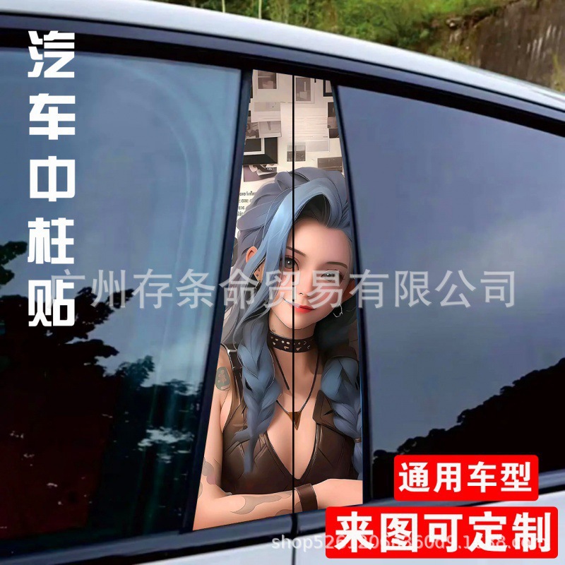 국경 간 좋은 상품 중간 열 자동차 스티커 자동차 B-기둥 스티커 아름다움 다시 만화 광대 실크 장식 스크래치 스티커스토어 가기