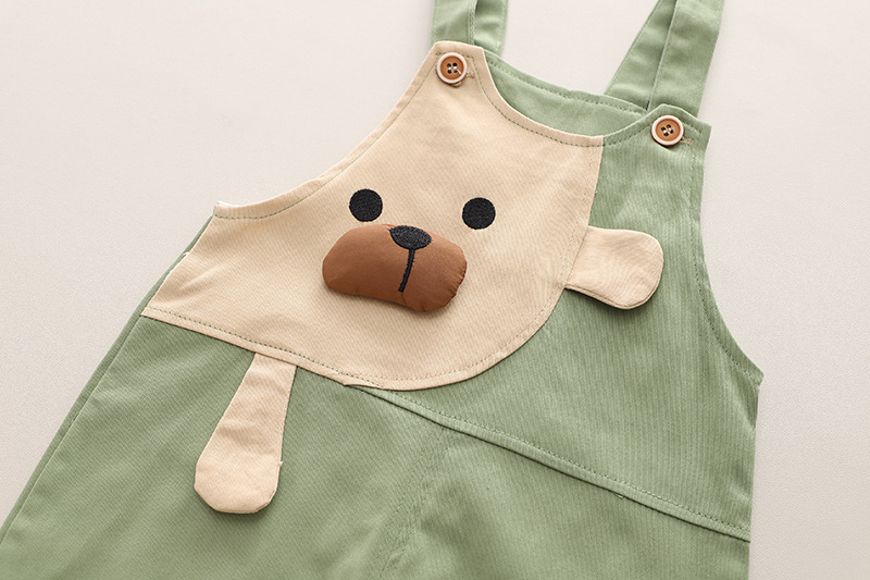 2024 새로운 소년 가을 세트 아기 캐주얼 어린이 봄과 가을 만화 줄무늬 곰 스트랩 투피스 세트스토어 가기