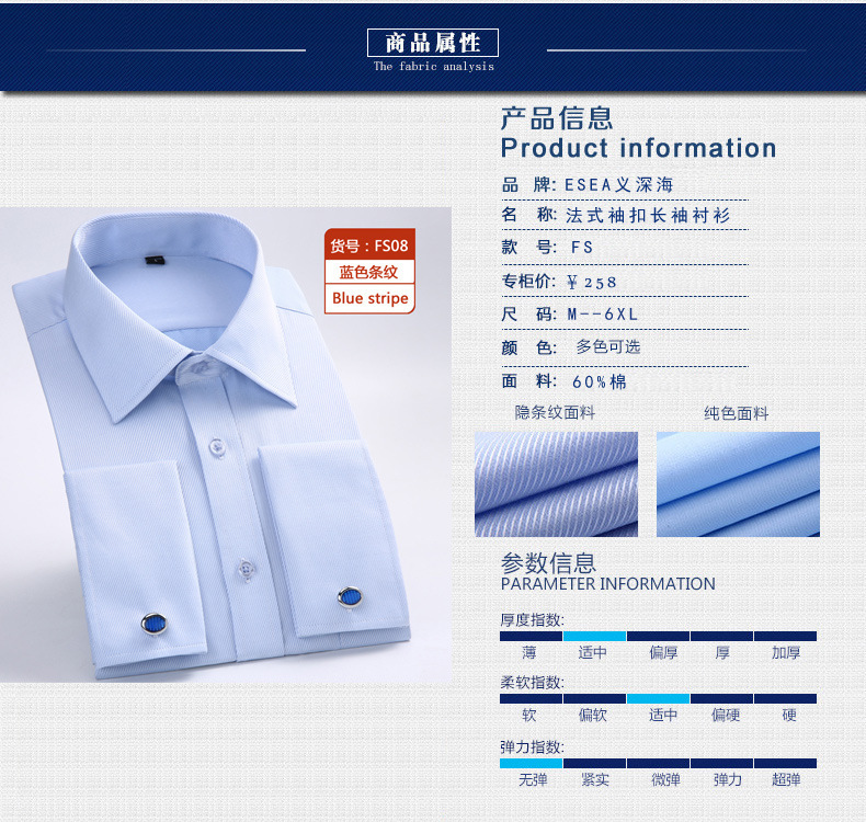 엄격한 선택 남자 가을 셔츠 파티 남자 봄과 여름 대외 무역 이베이 AliExpress 느슨한 남자 프랑스 커프스 단추 셔츠스토어 가기