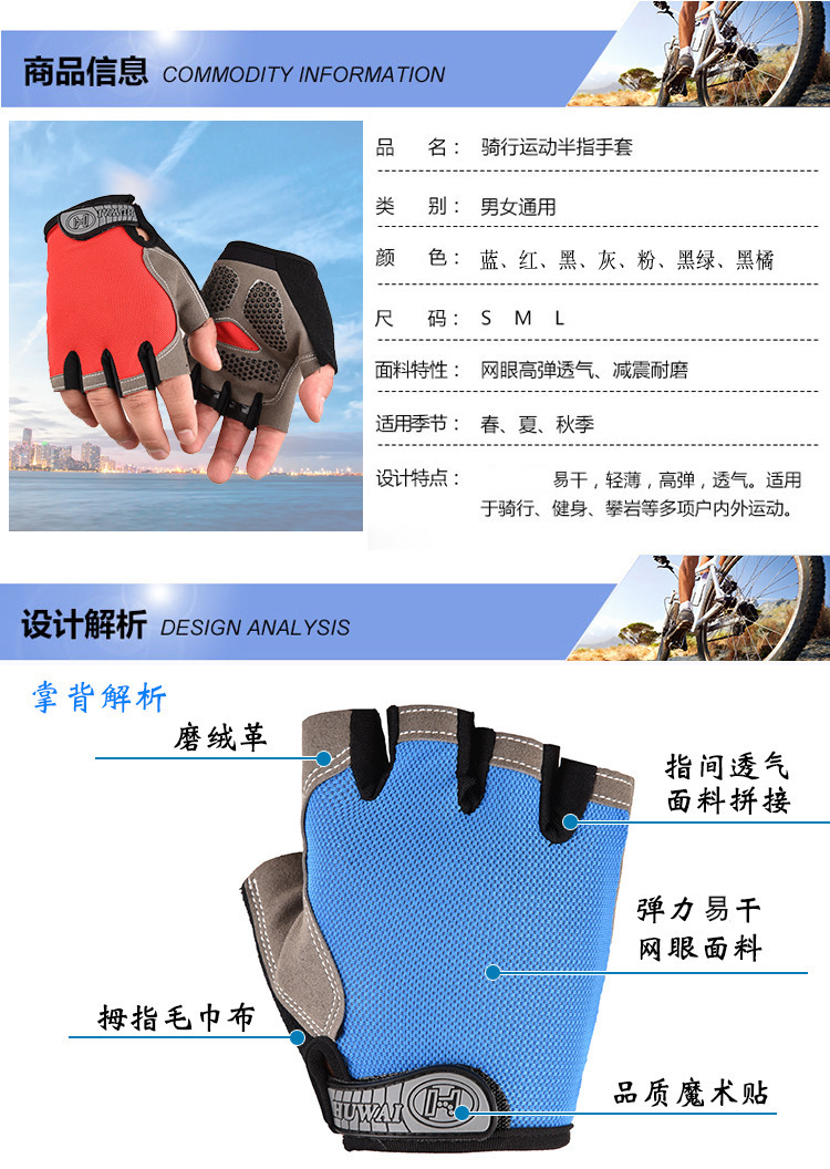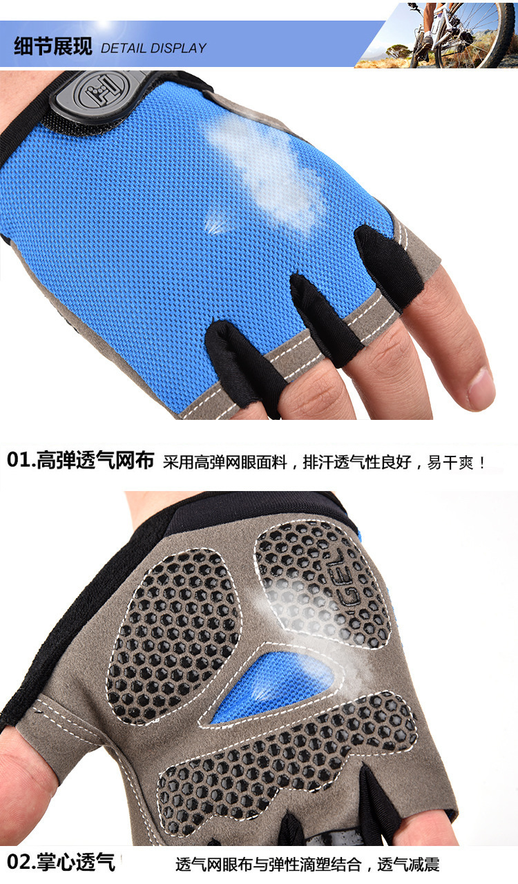 자전거 스포츠 장갑 반 손가락 남자와 여자의 자전거 짧은 손가락 야외 사이클링 장갑 비 슬립 스포츠 장갑