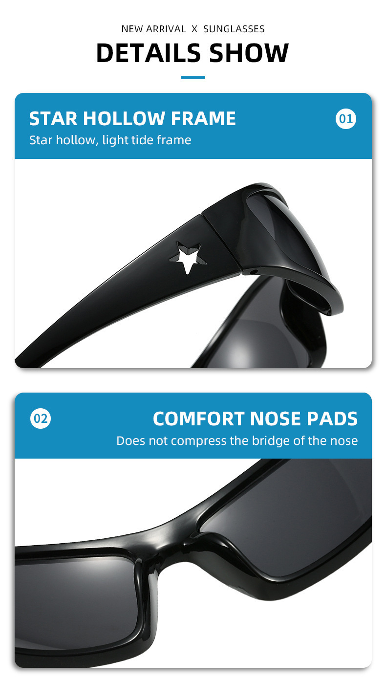 남성 패션 스포츠 속이 빈 202412 선글라스 힙합 멀티 컬러 공장 직접 다섯개 별 새로운 없음