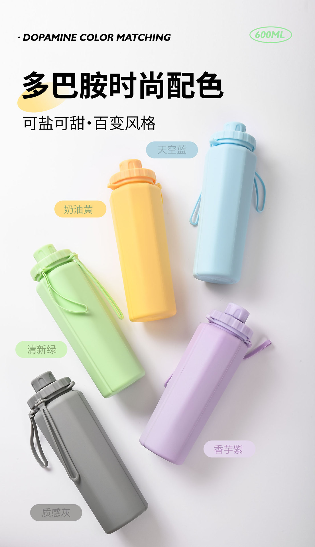 실리콘 스포츠 물병, 휴대용 낙하 방지 및 고온 방지 접이식 식품 등급 실리콘 물컵 도매를 재고로 보유하고 있습니다.스토어 가기