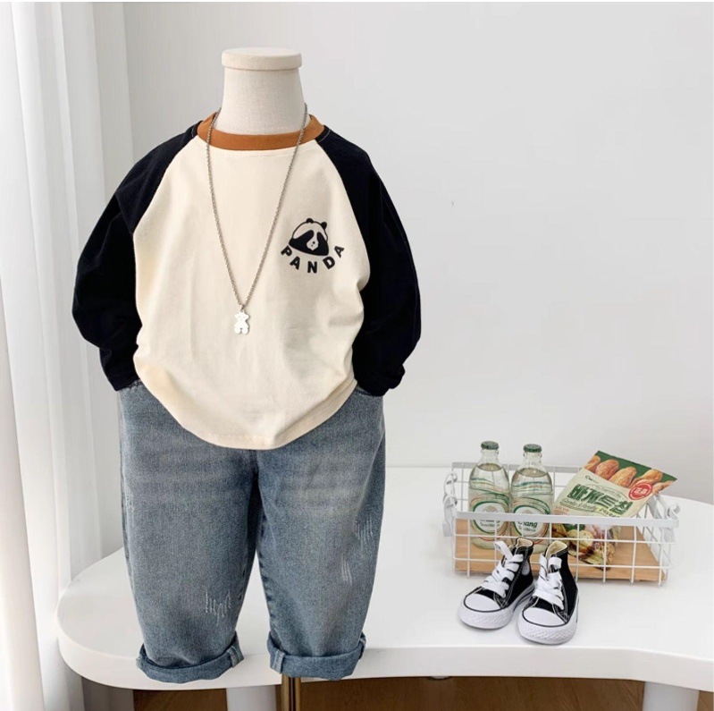 [한샤오샤오] 소년면 티셔츠 새 어린이 둥근 목 만화 라글란 소매베이스 셔츠 긴소매 캐주얼 T스토어 가기