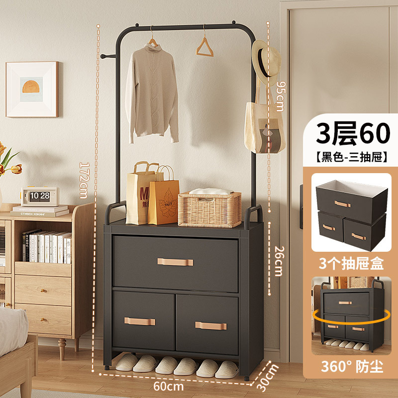 간단한 코트 랙 바닥 서 가정용 다기능 옷걸이 서랍 유형 방진 보관 가방 통합 의류 랙