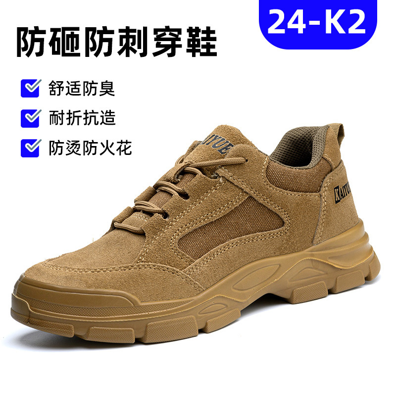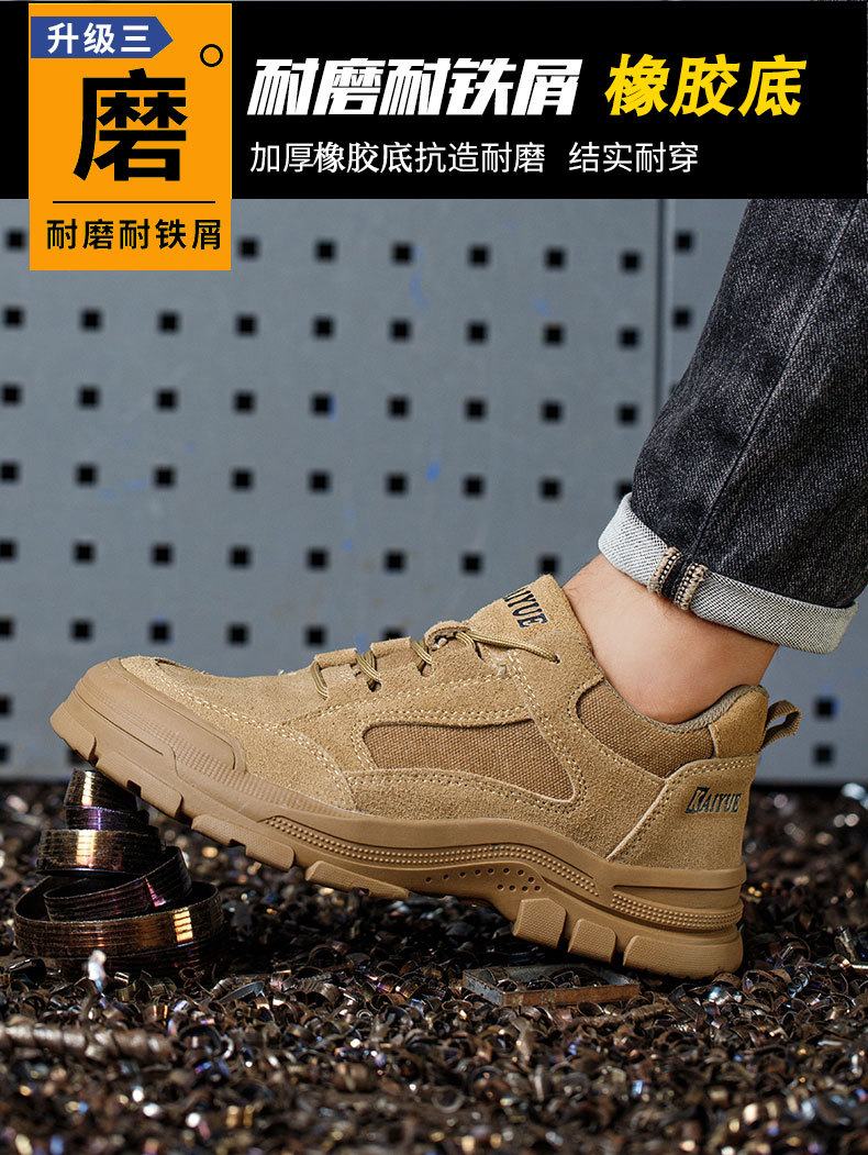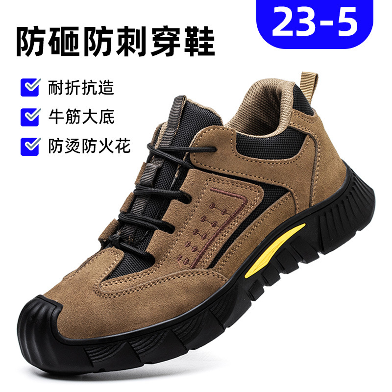 안전 신발 남성용 스매싱 방지 피어싱 강철 발가락 내마모성 작업 착취 방지 미끄럼 방지 Cowhide 안전 신발 건설 현장스토어 가기