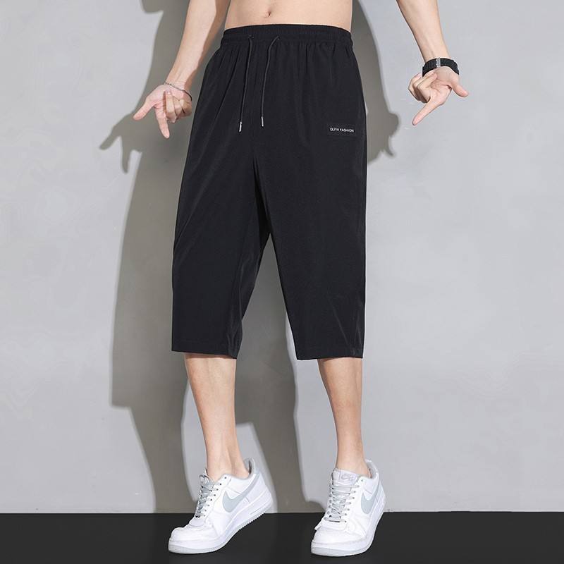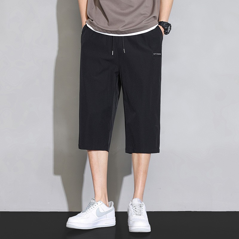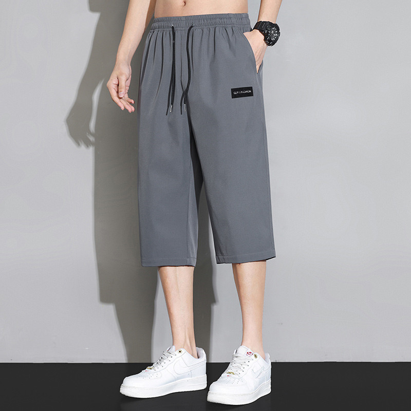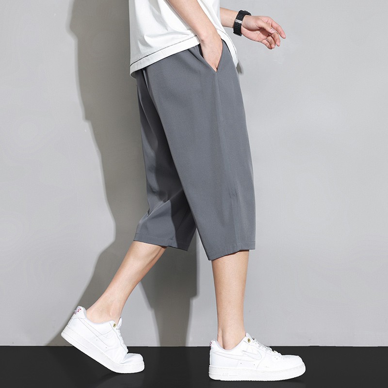 아이스 실크 카프리 바지 남자 여름 얇은 한국식 트렌디 올매치 스타일시 허리 스트레이트 캐주얼 반바지 빠른 건조 바지