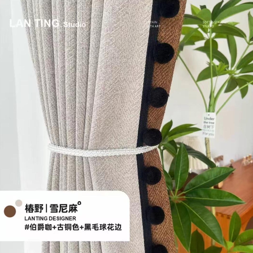새로운 그물 빨간 툰 야생 물고기 뼈 패턴 코튼 자카드 블랙 아웃 커튼 골동품 마일 라드 컬러 크림 스타일