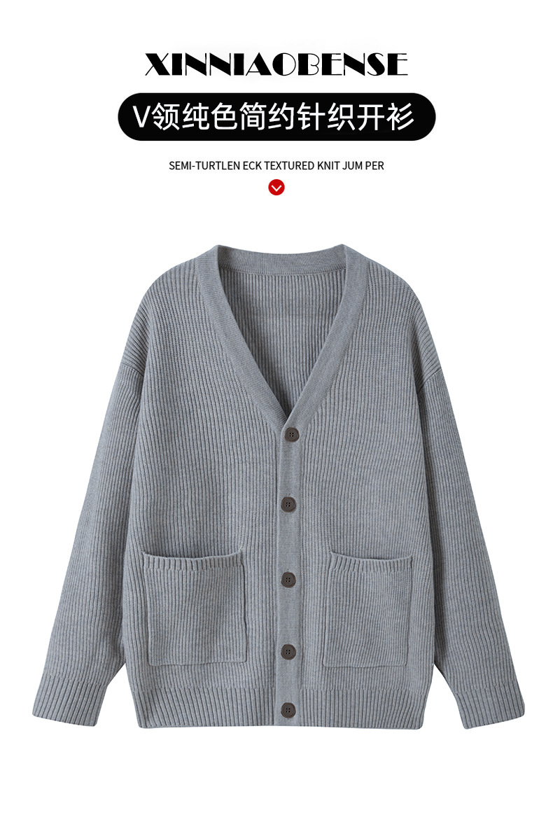 남성용 니트 솔리드 컬러 V 목베이스 셔츠 버튼 카디건 재킷 코트 가을 카디건 긴 소매 니트웨어