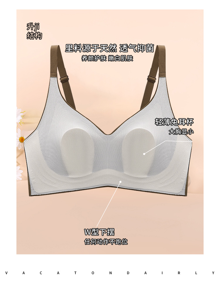 초박형 Traceless Rabbit Ear 원래 속옷 여성의 Rimless 대형 가슴 작은 슬림 방지 처짐 소프트 서포트 브라
