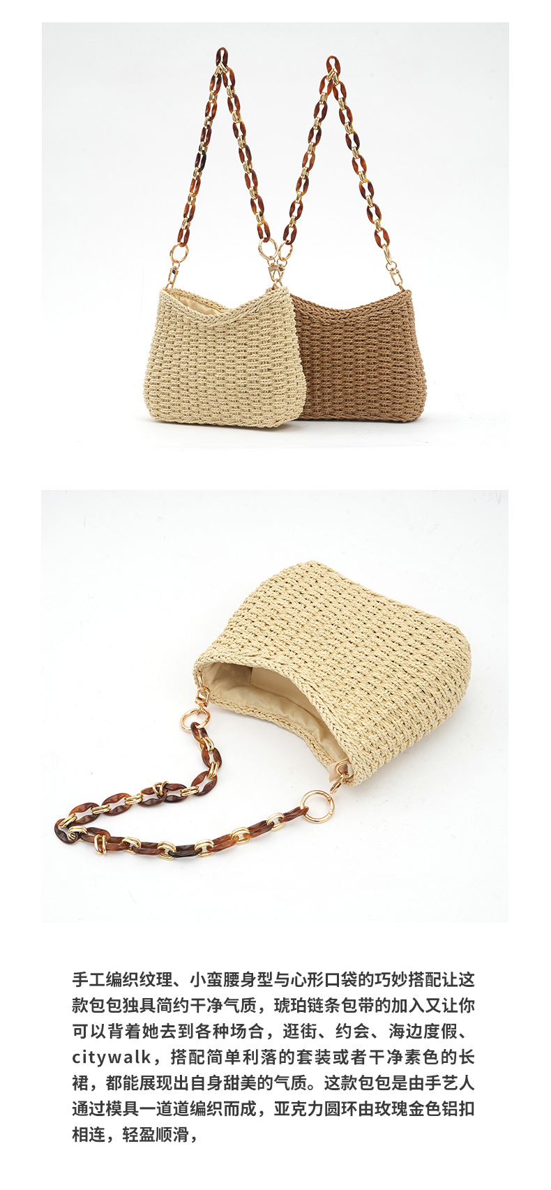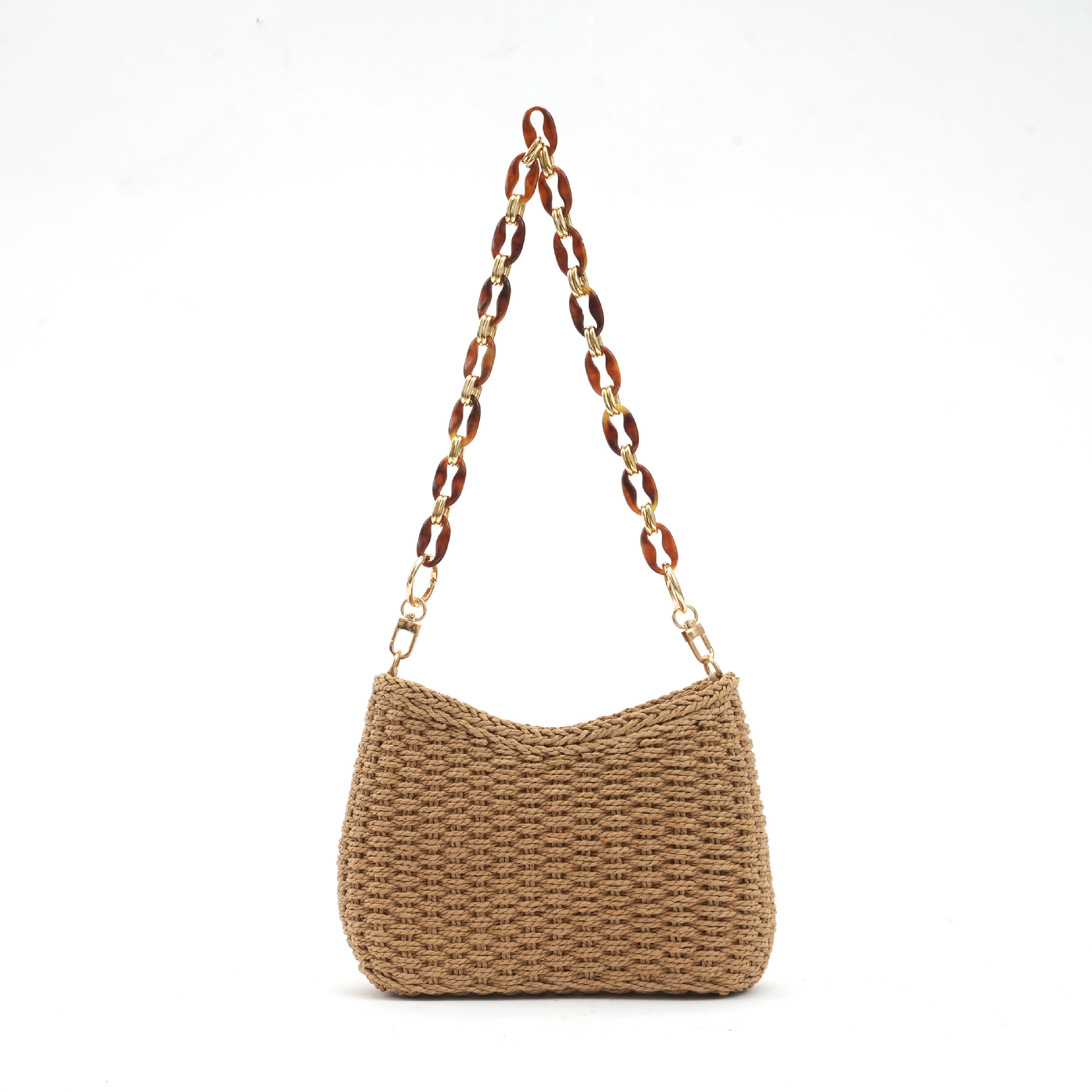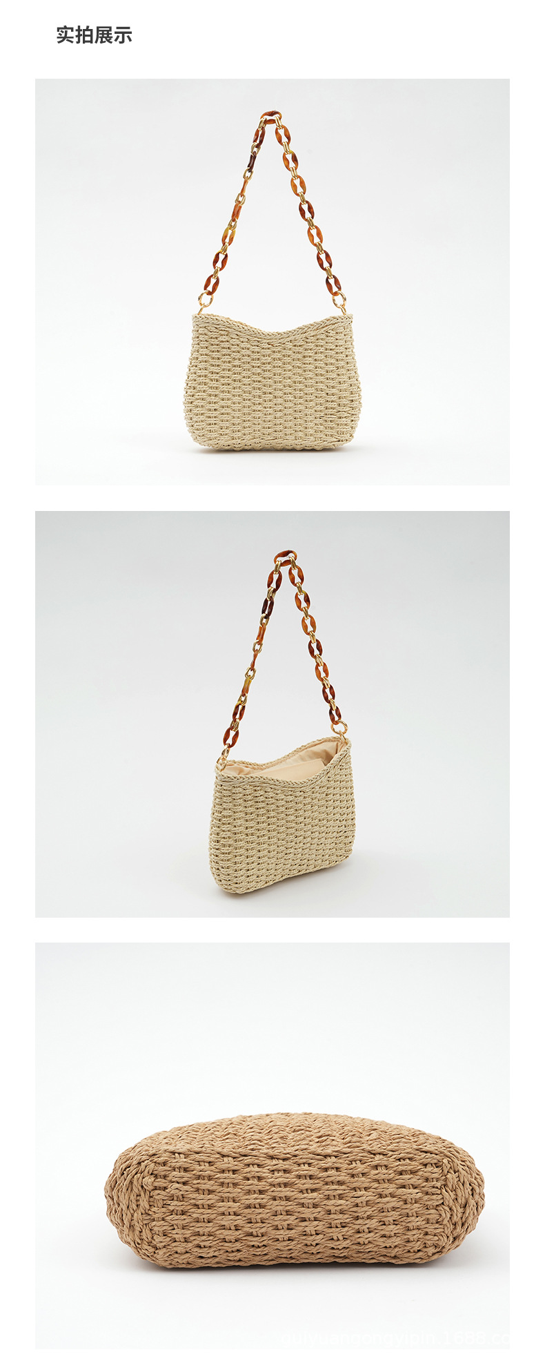 손으로 짠 체인 숄더백 여유로운 느낌의 밀짚 가방 여름 해변 휴가 비치백 출퇴근용 여성 숄더백