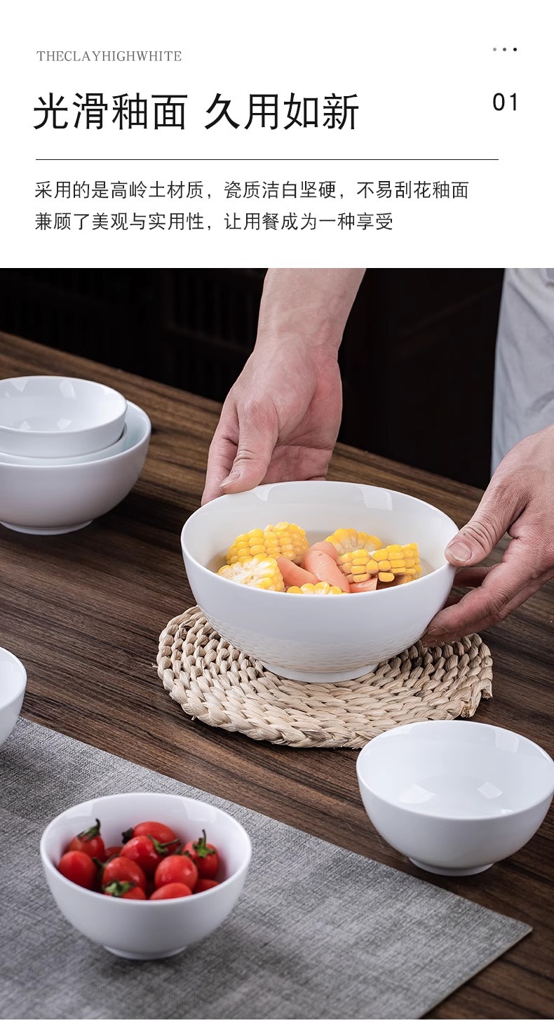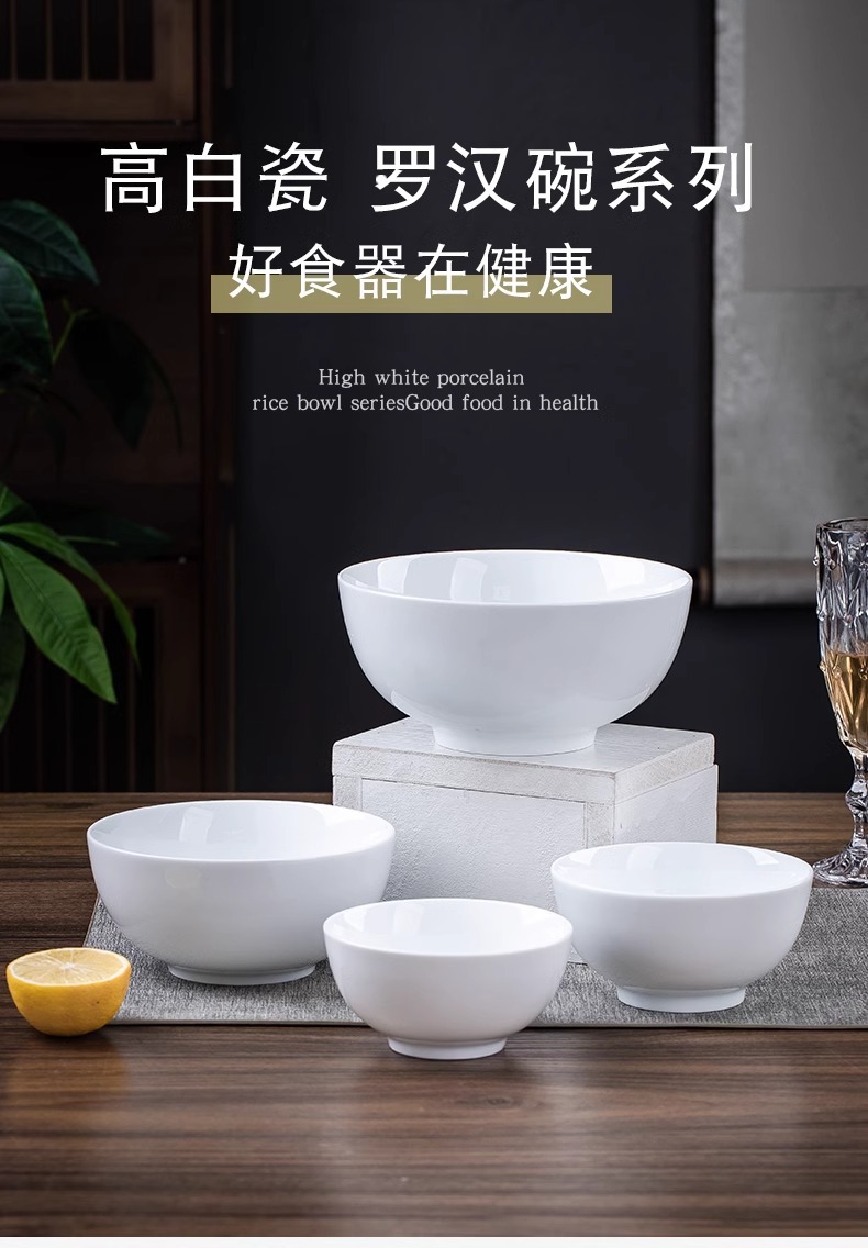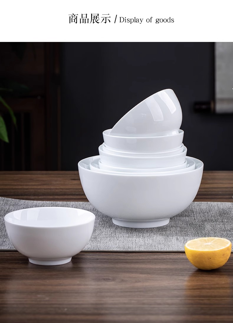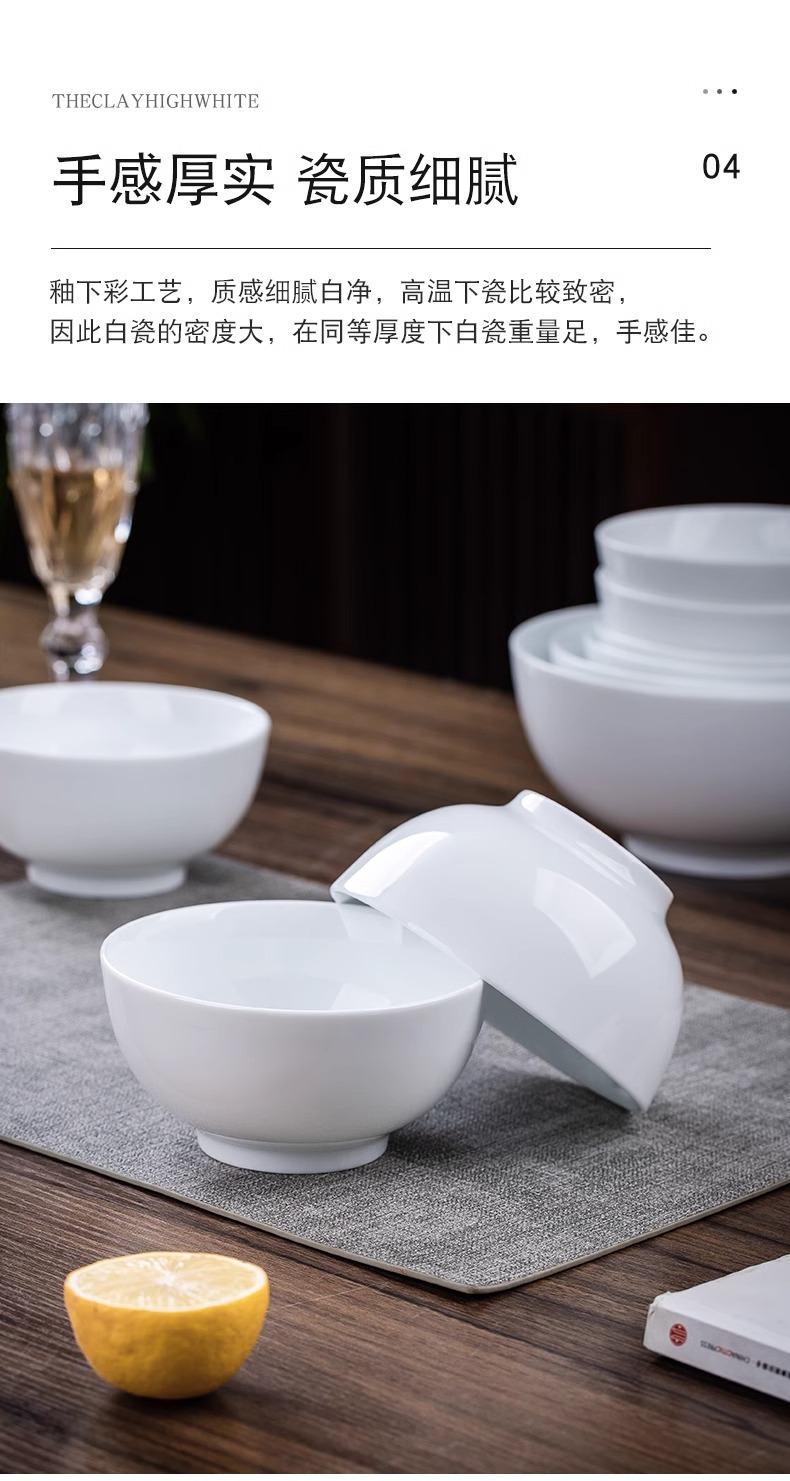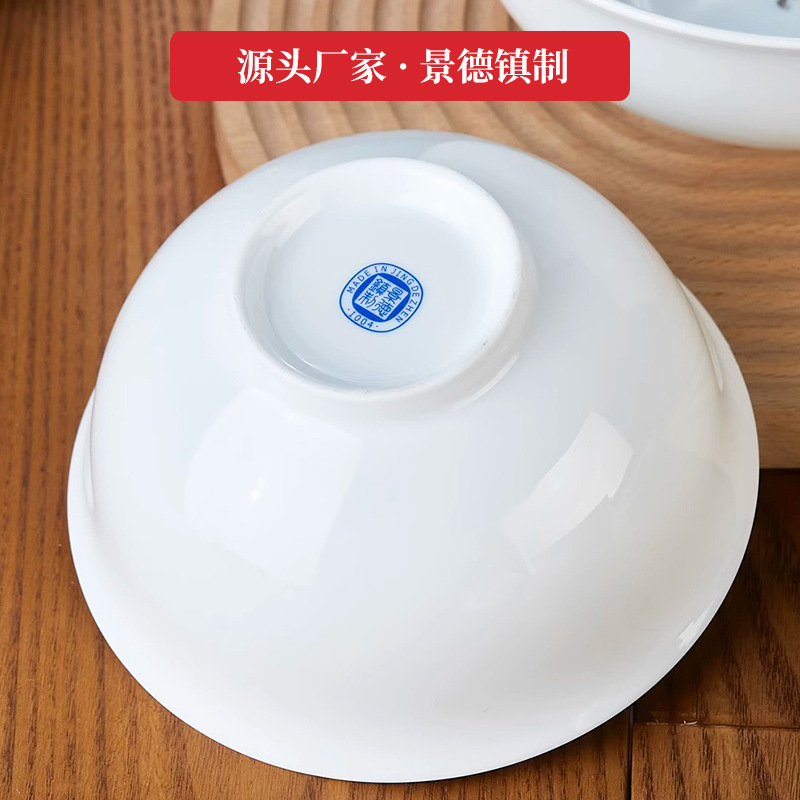 Jingdezhen 흰색 도자기 쌀 그릇 간단한 순수한 흰색 수프 그릇 가정용 국수 그릇 유약 컬러 세라믹 쌀 그릇 세트 공장 도매스토어 가기