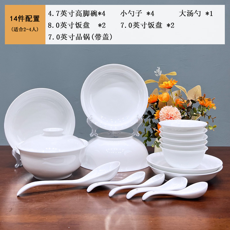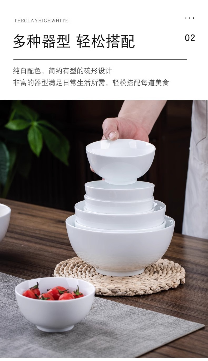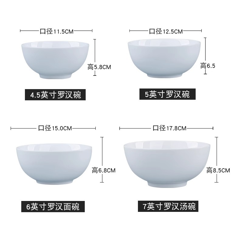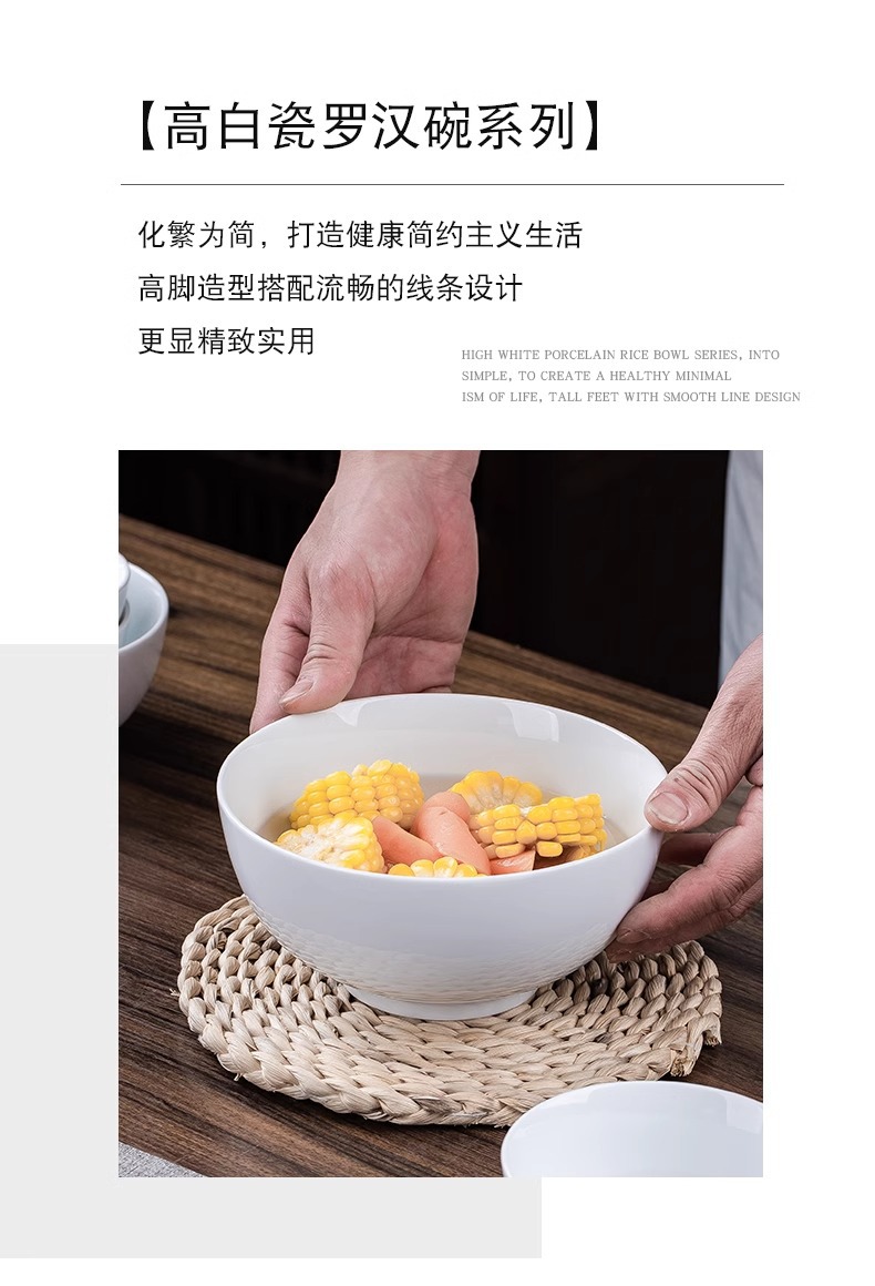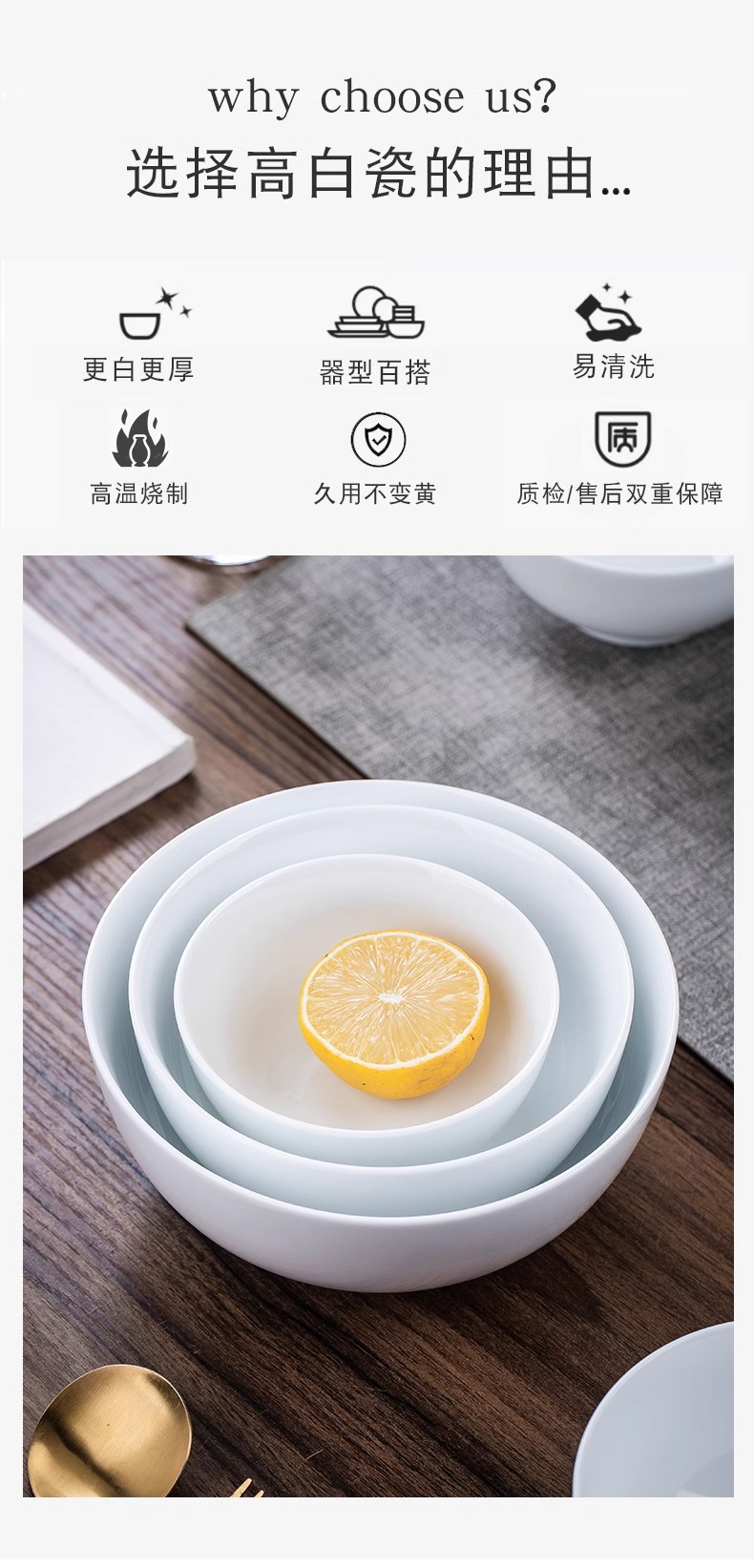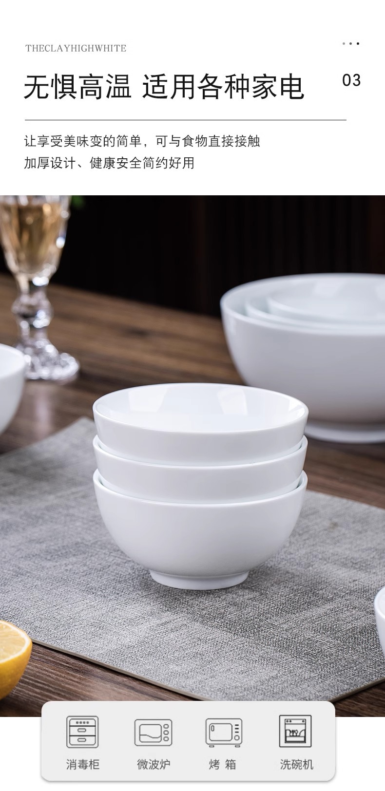 Jingdezhen 흰색 도자기 쌀 그릇 간단한 순수한 흰색 수프 그릇 가정용 국수 그릇 유약 컬러 세라믹 쌀 그릇 세트 공장 도매스토어 가기