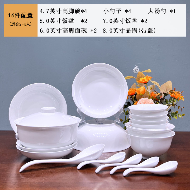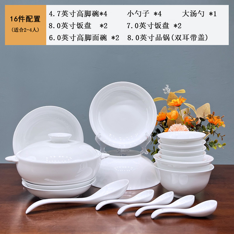 • 전자레인지 및 식기세척기에 적합한 하이 백자 접시 16개 [8.0 맛 냄비 포함]