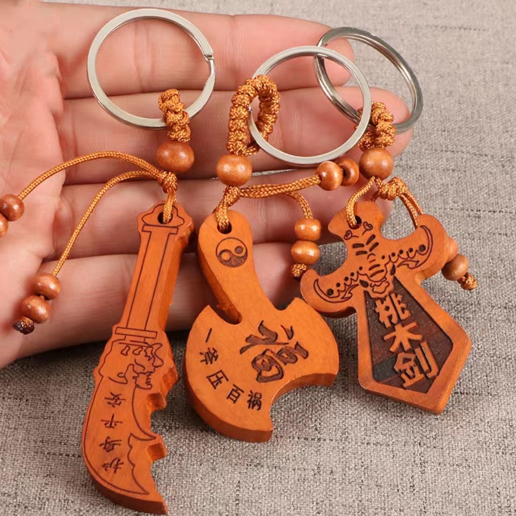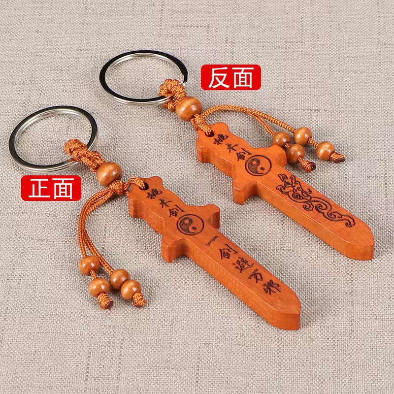 복숭아나무 열쇠고리, 정교하게 조각된 안전 부적, 복숭아나무 칼, 행운의 주머니, 복숭아나무 자동차 열쇠고리 선물 도매