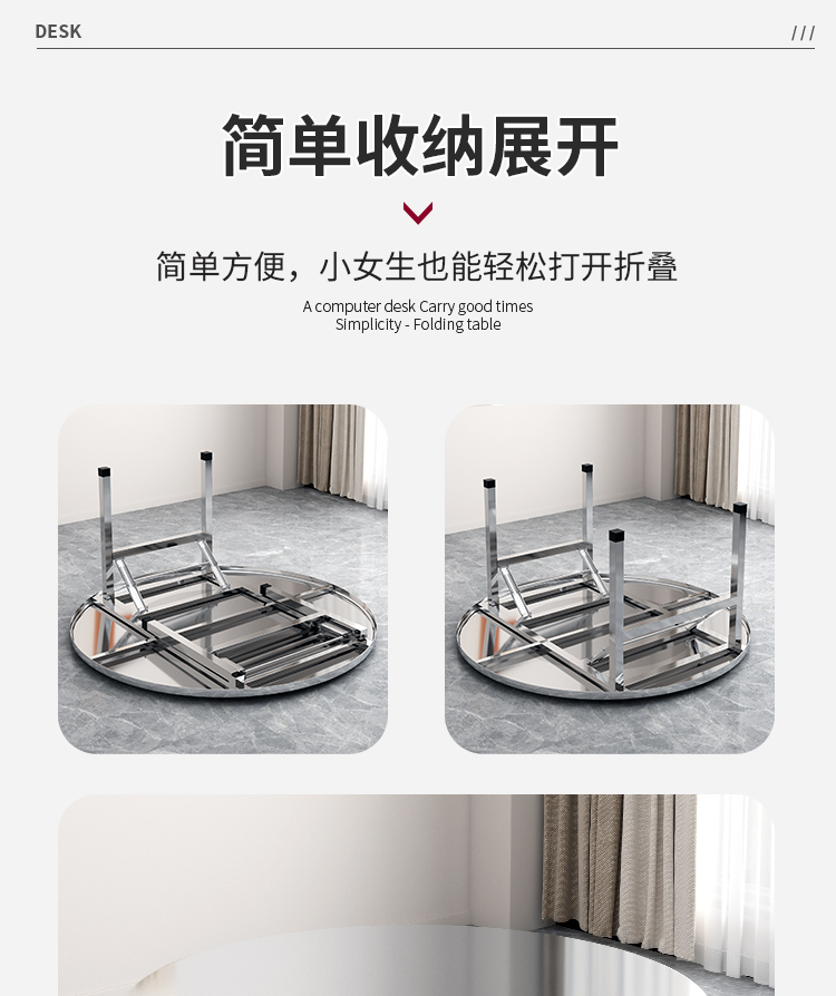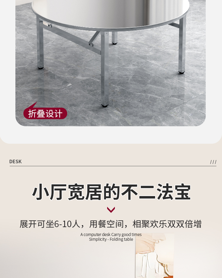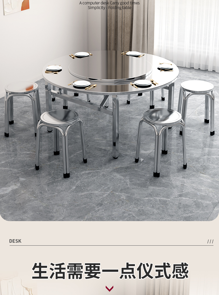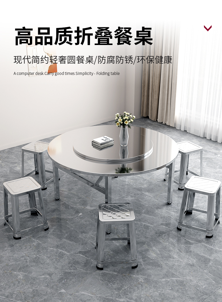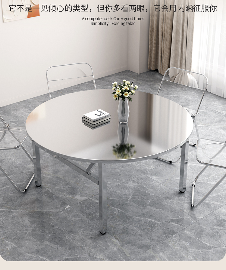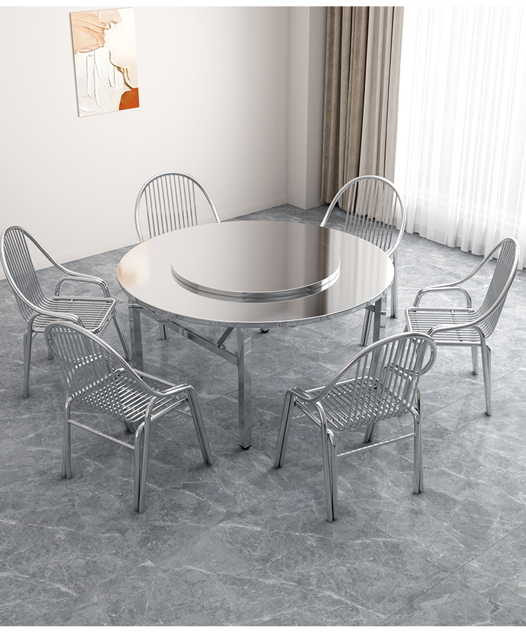 스테인레스 스틸 접이식 라운드 테이블 탑 가정용 간단한 라운드 테이블 금속 현대 중국 스타일 배달 위층스토어 가기