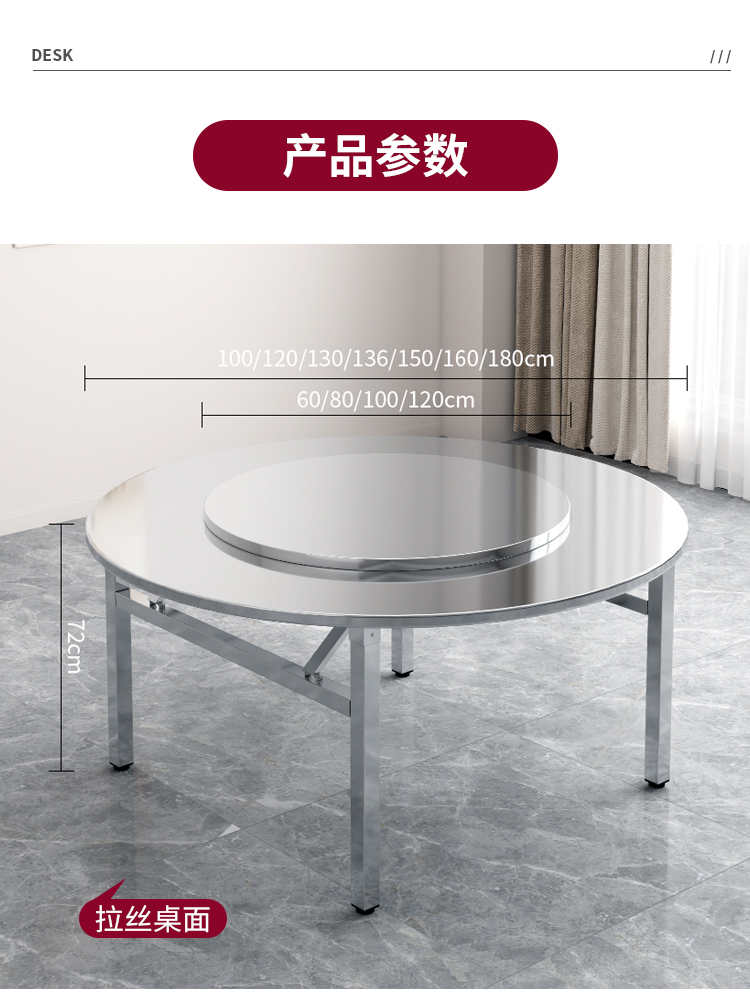 • 1.36m 브러시드 내부 접이식 테이블 + 80 엠보싱 턴테이블
