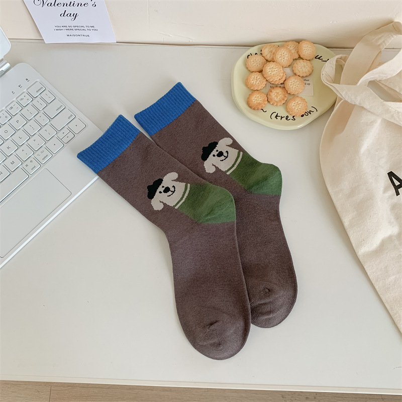 24 년 양말 여성 이른 가을과 겨울 새로운 발 뒤꿈치 동물 그림 면 중간 튜브 양말 독립적 인 포장