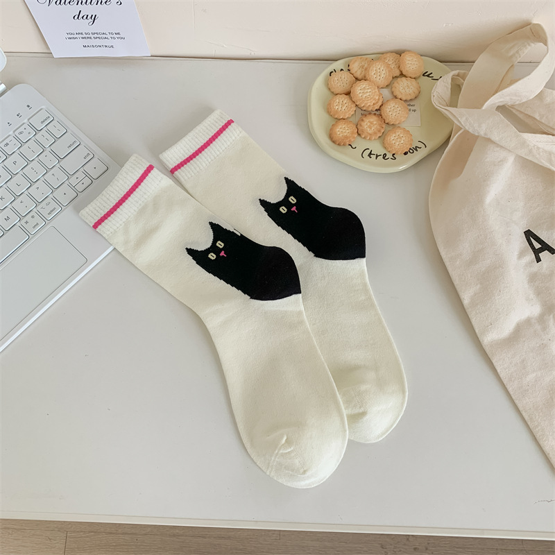 24 년 양말 여성 이른 가을과 겨울 새로운 발 뒤꿈치 동물 그림 면 중간 튜브 양말 독립적 인 포장스토어 가기