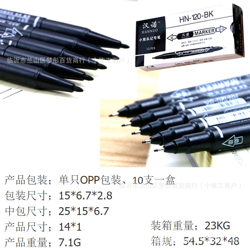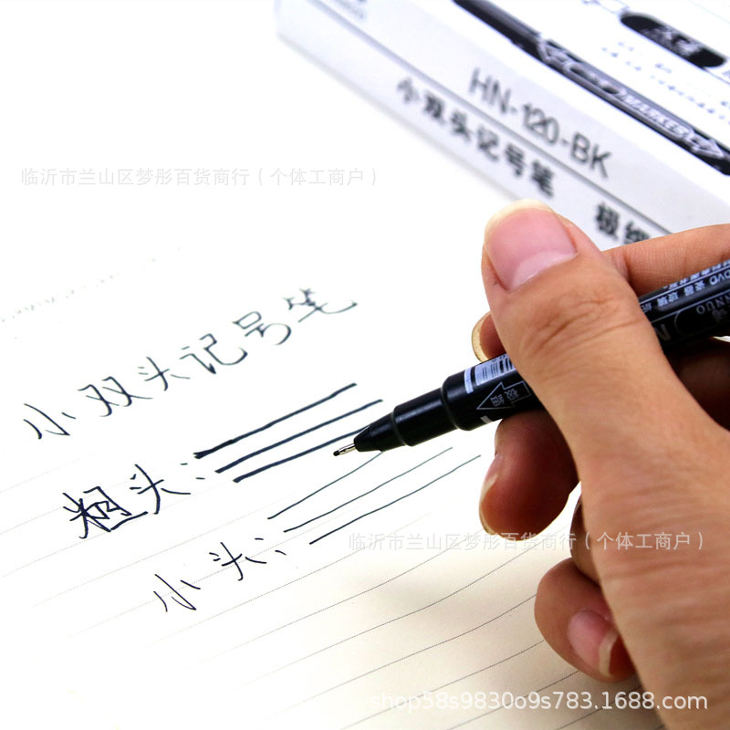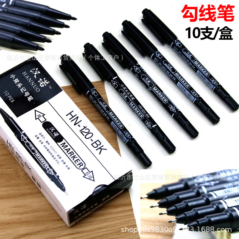 한노 작은 양두 마커 10 개의 gou 라인 펜 학생 1 상자 이중 목적 gou 가장자리 펜 블랙 도매를 그리는 어린이스토어 가기