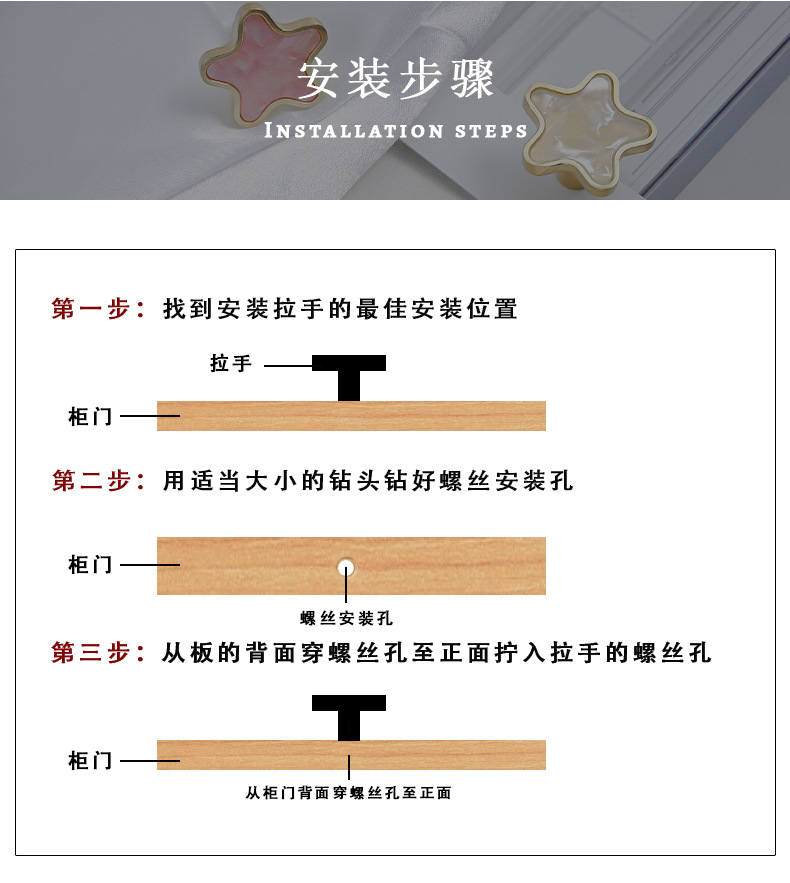 북유럽 5 코너 스타 쉘 핸들 현대 간단한 캐비닛 황금 투명 서랍 옷장 문 가구 문 손잡이스토어 가기