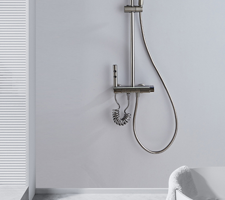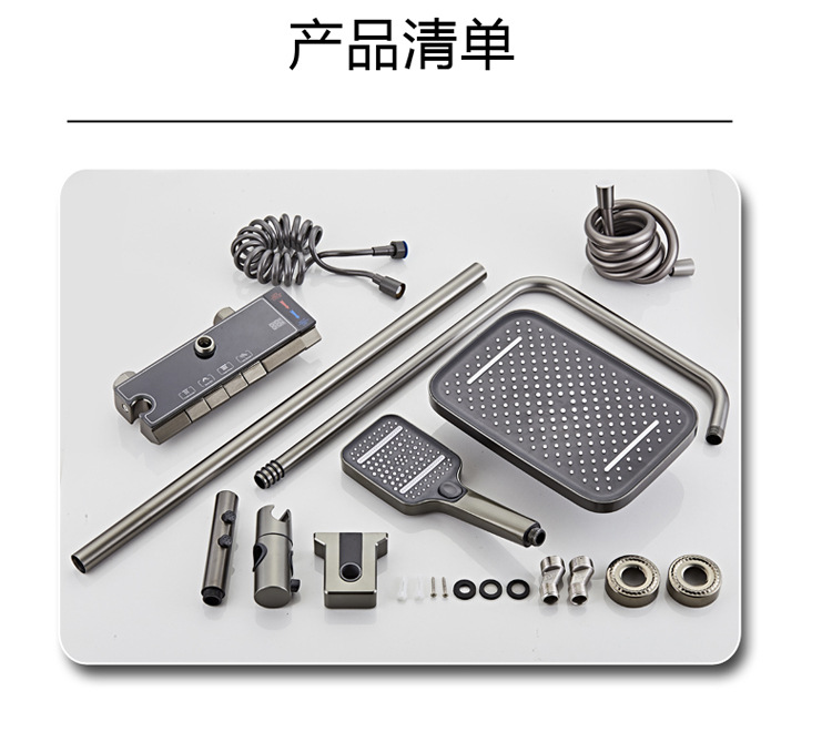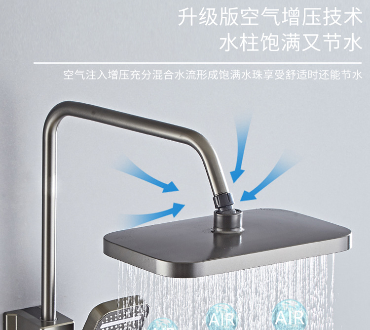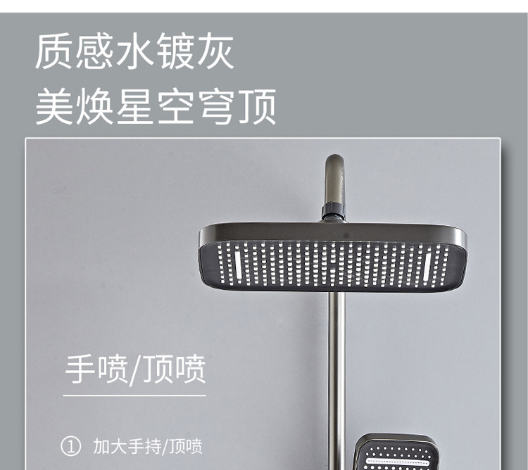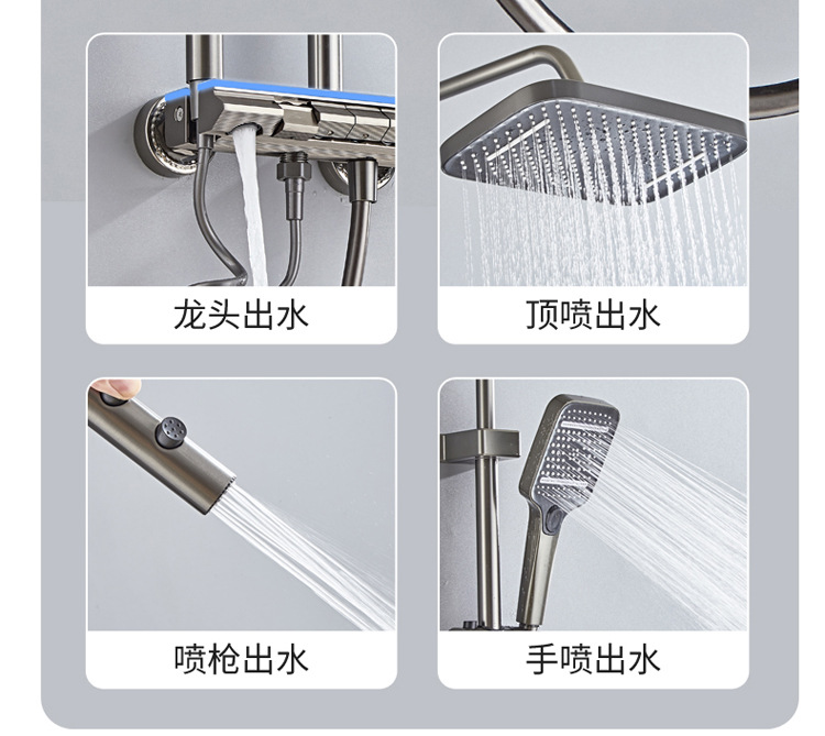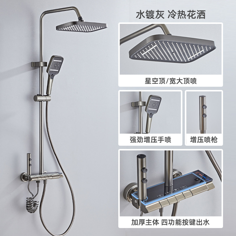 공간 알루미늄 디지털 디스플레이 버튼 물 도금 회색 샤워 세트 욕실 욕실 욕실 집 샤워 노즐