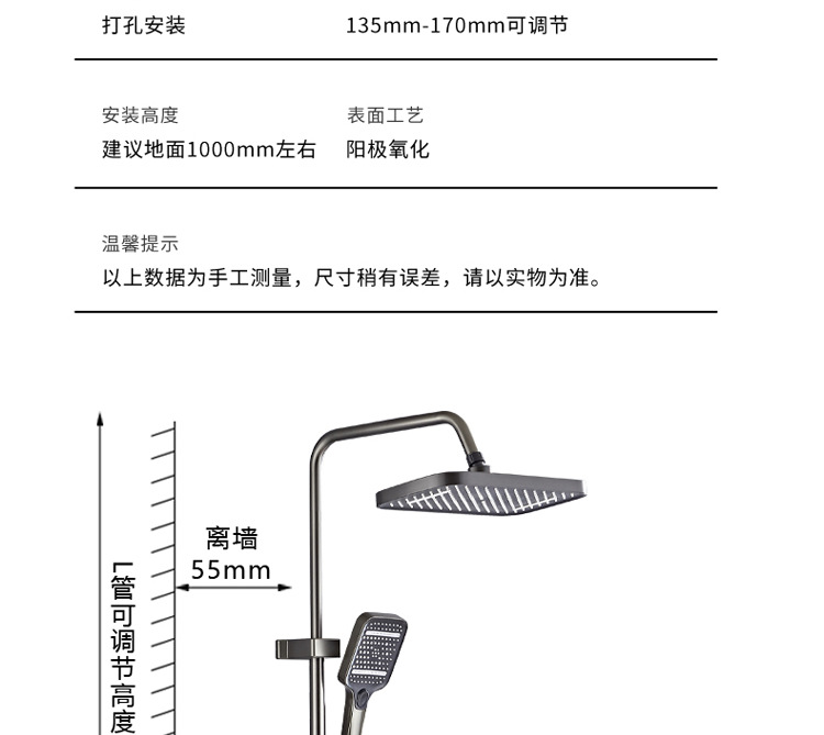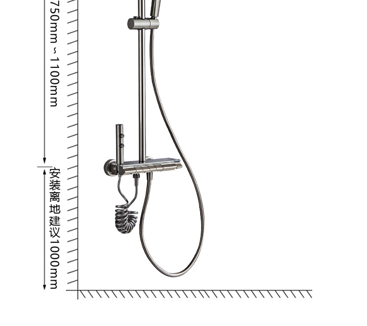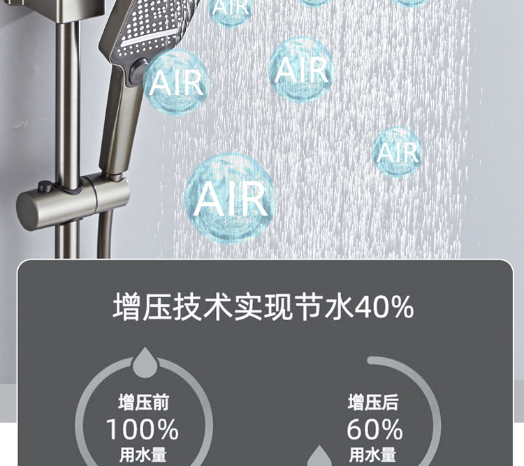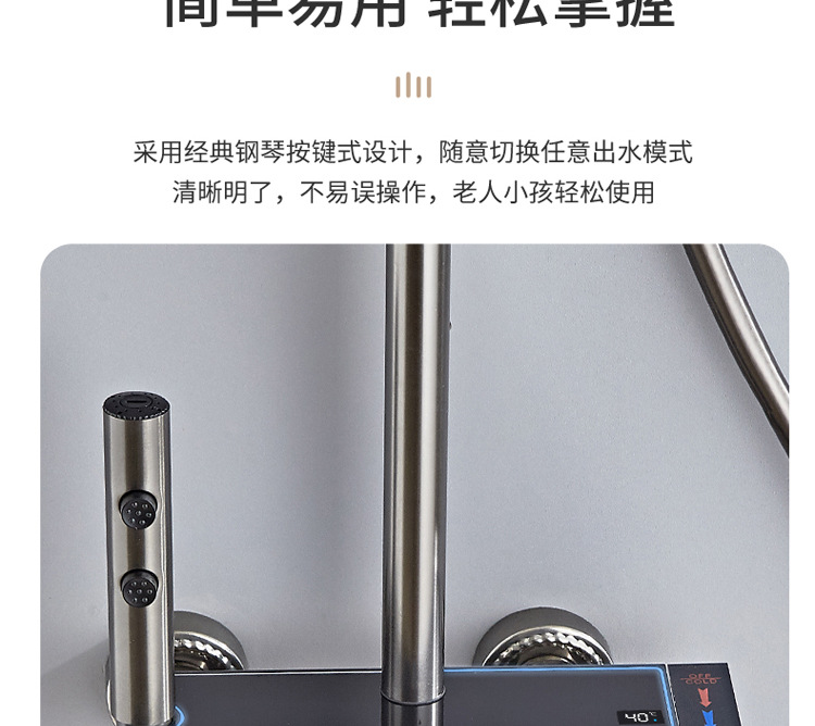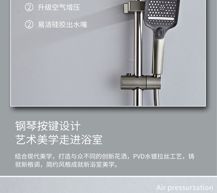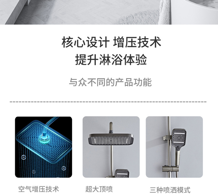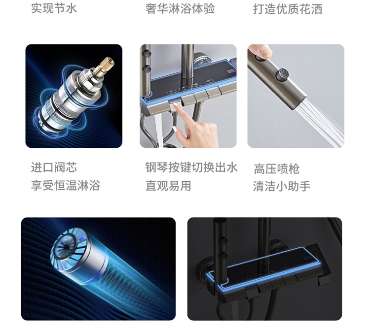 공간 알루미늄 디지털 디스플레이 버튼 물 도금 회색 샤워 세트 욕실 욕실 욕실 집 샤워 노즐