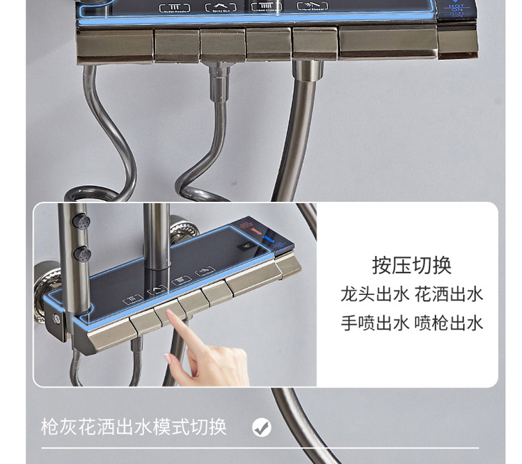 공간 알루미늄 디지털 디스플레이 버튼 물 도금 회색 샤워 세트 욕실 욕실 욕실 집 샤워 노즐스토어 가기