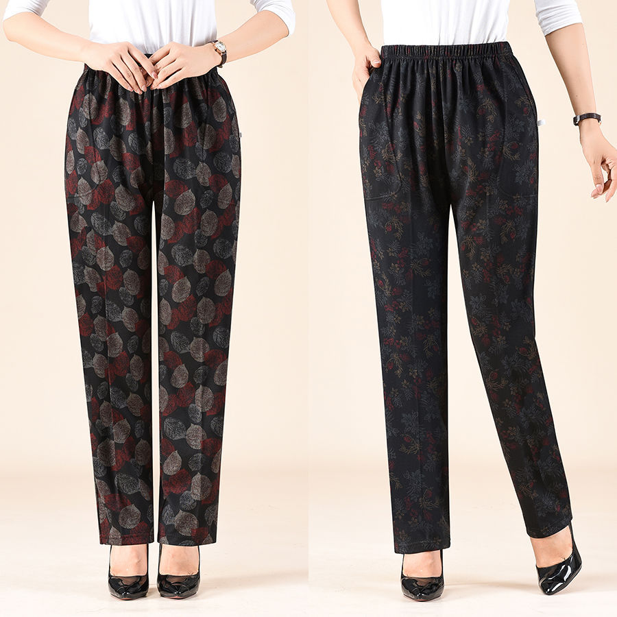 엄마 바지 가을 바지 중년 여성 바지 봄과 가을 캐주얼 바지 노인 느슨한 할머니 바지를위한 높은 허리 플러스 사이즈 바지스토어 가기