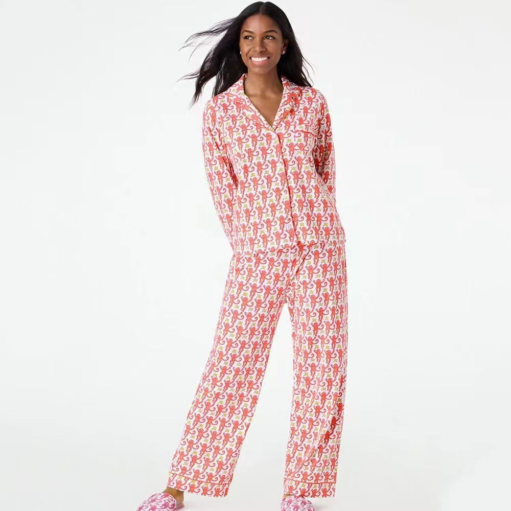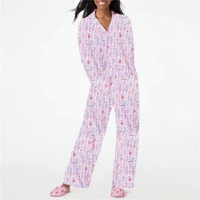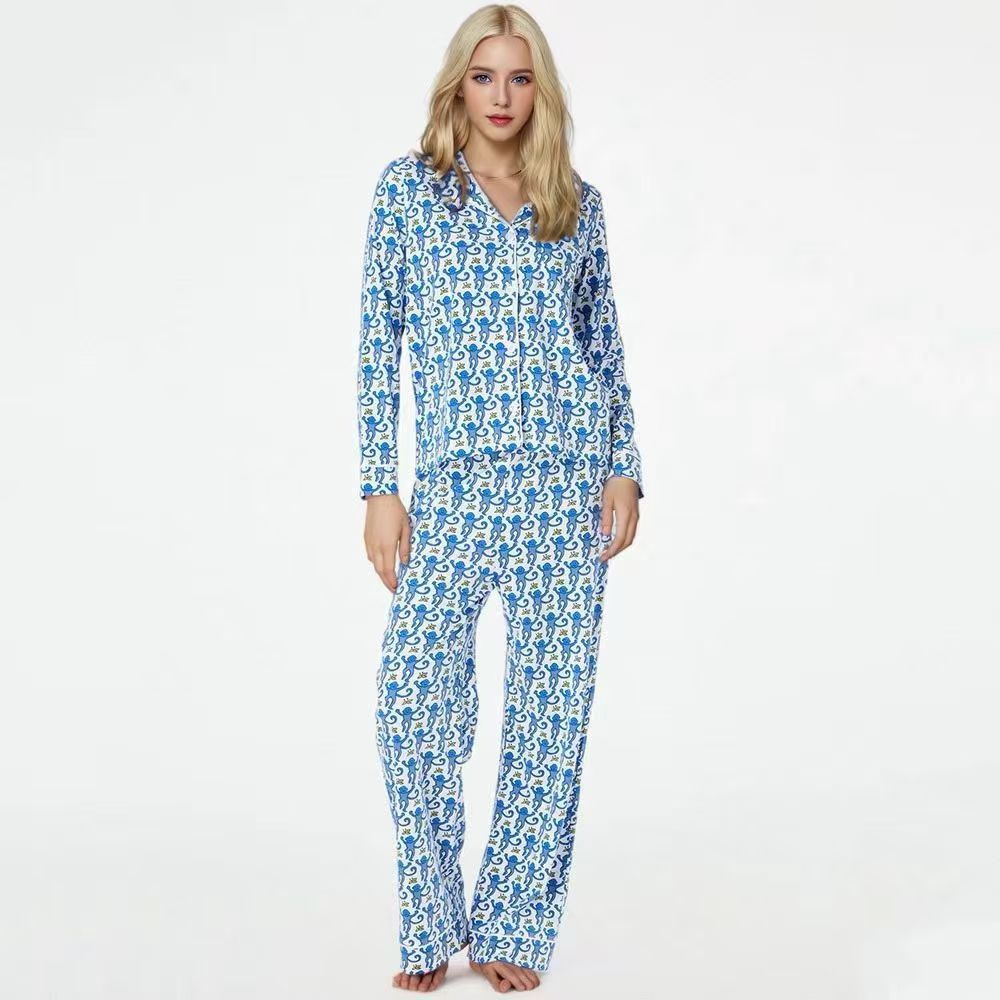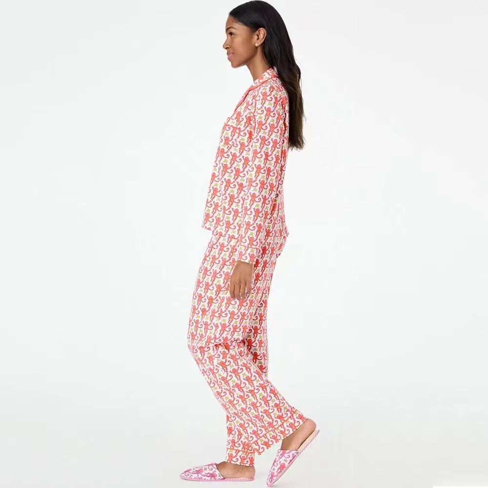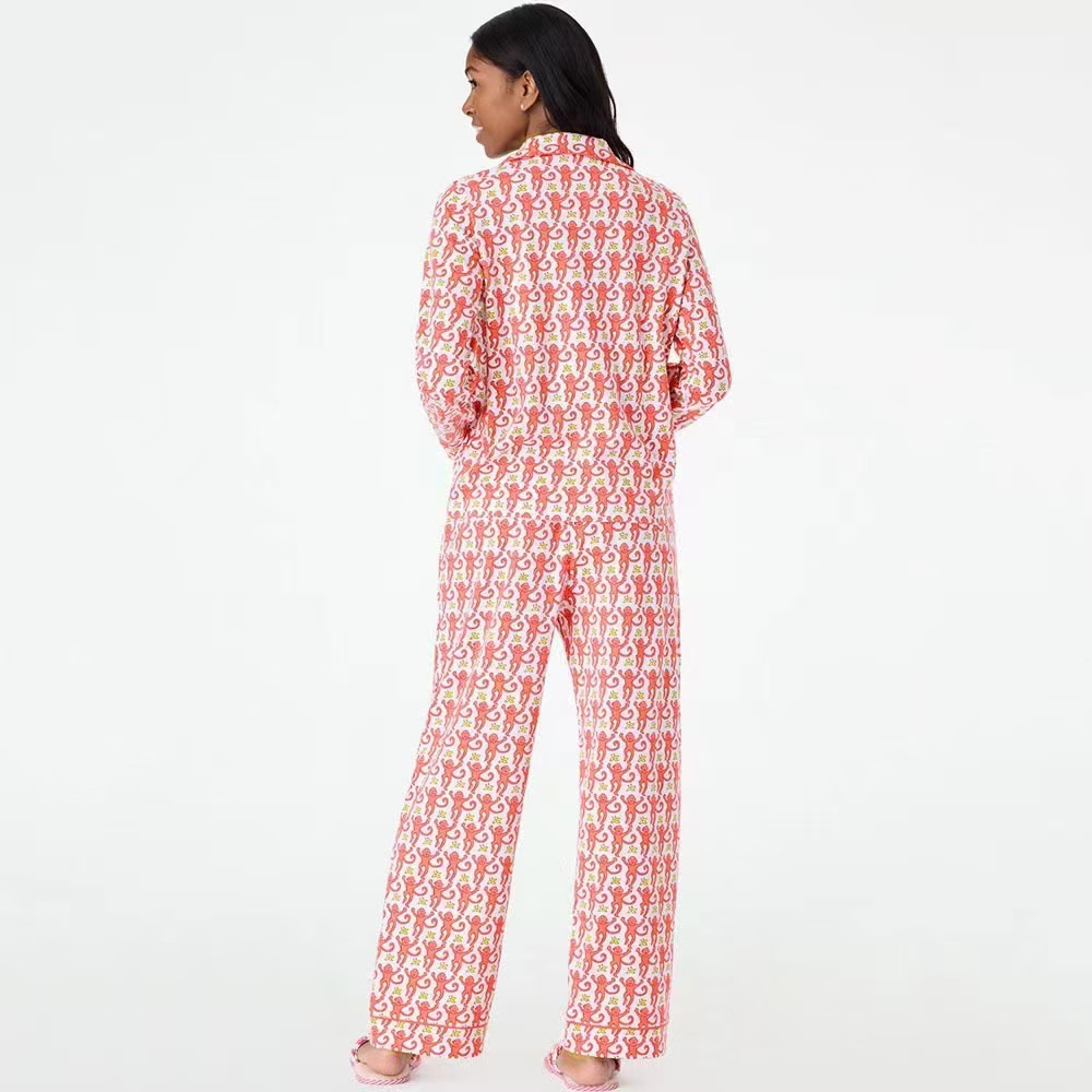 2024 년 가을 폭발 유럽과 미국의 집 옷 긴 소매 인쇄 폴로 레저 세트 국경 간 대외 무역 여성 잠옷 세트